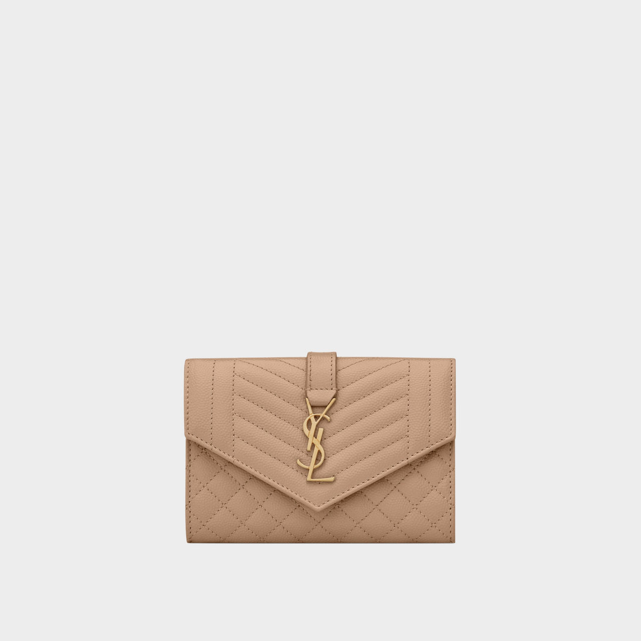 SAINT LAURENT Monogram Matelassé Leather Small Envelope Wallet