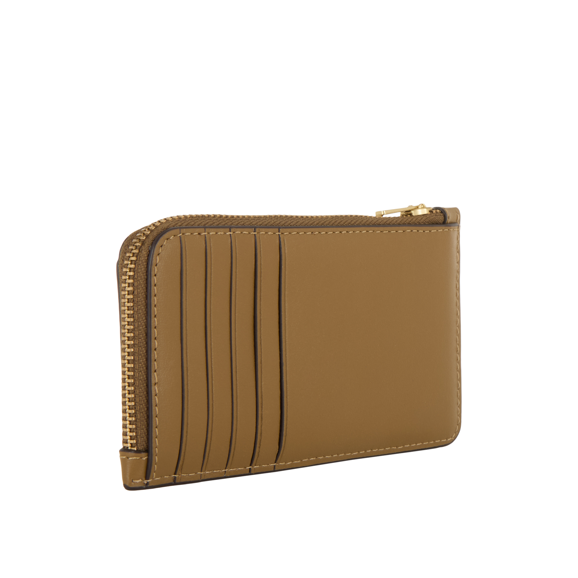 - Zip-around fastening, slip pockets, logo detail, gold-toned hardware