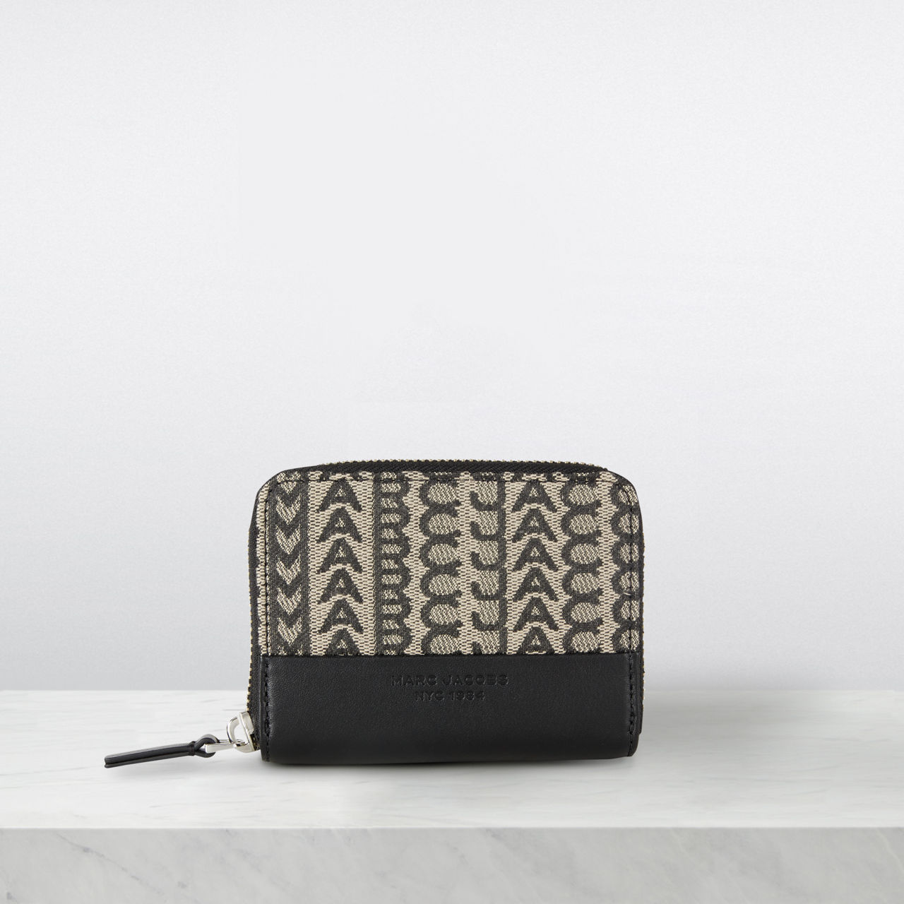 Marc Jacobs updates its classic wallet design with an all-over monogram print this season. It's crafted from a mix of jacquard fabric and leather, which is shaped to a compact size and is finished with a zip-around fastening to keep everything safe and secure.