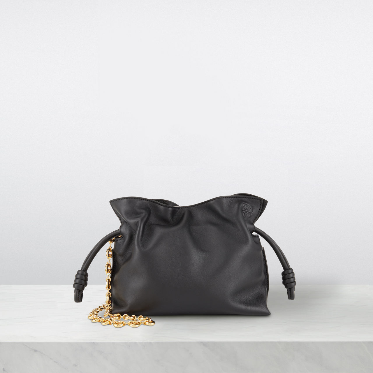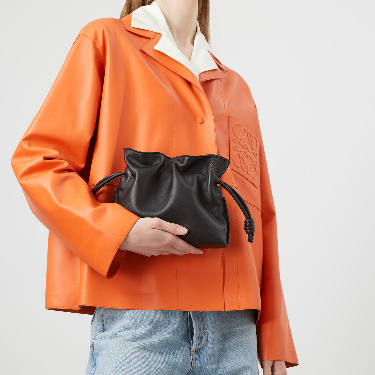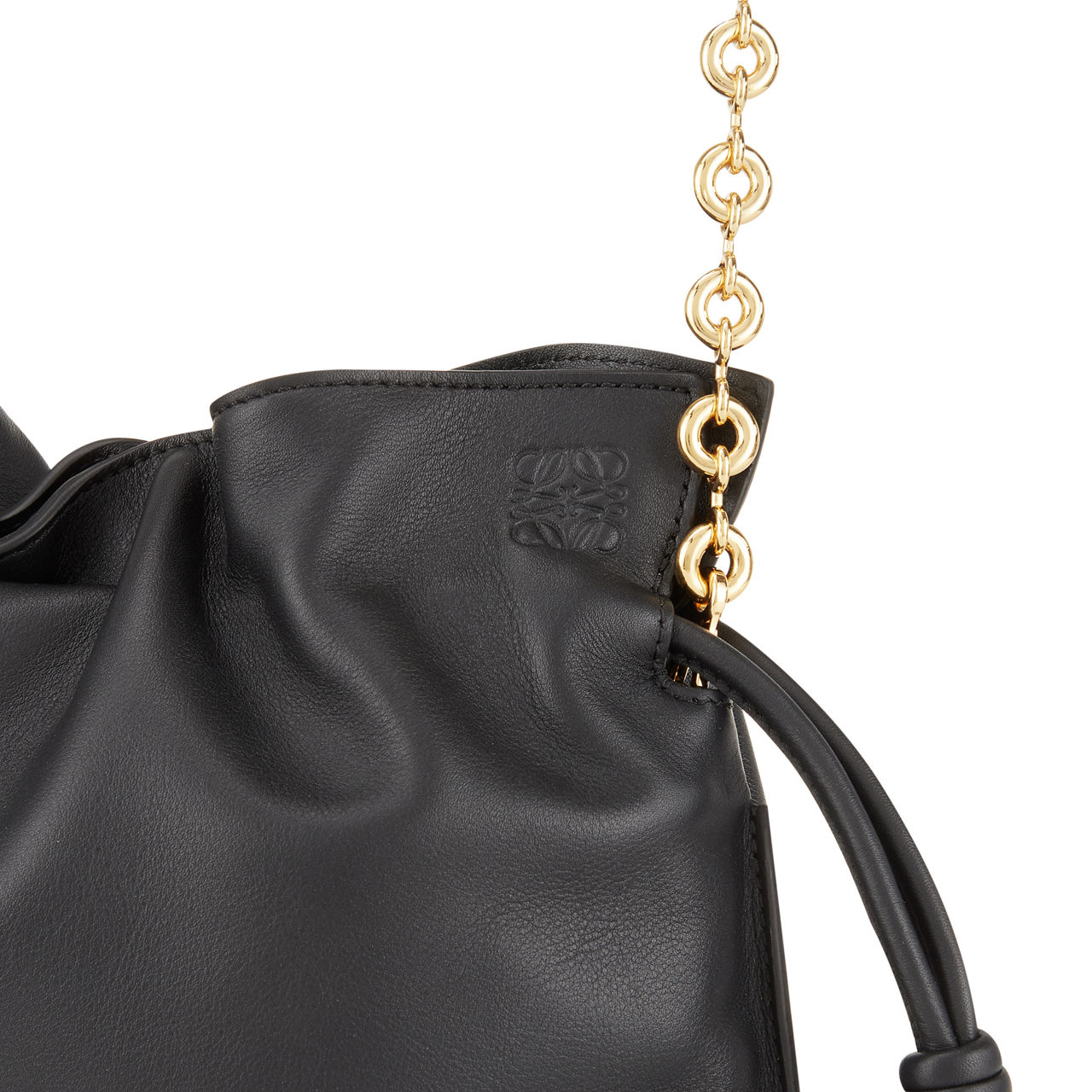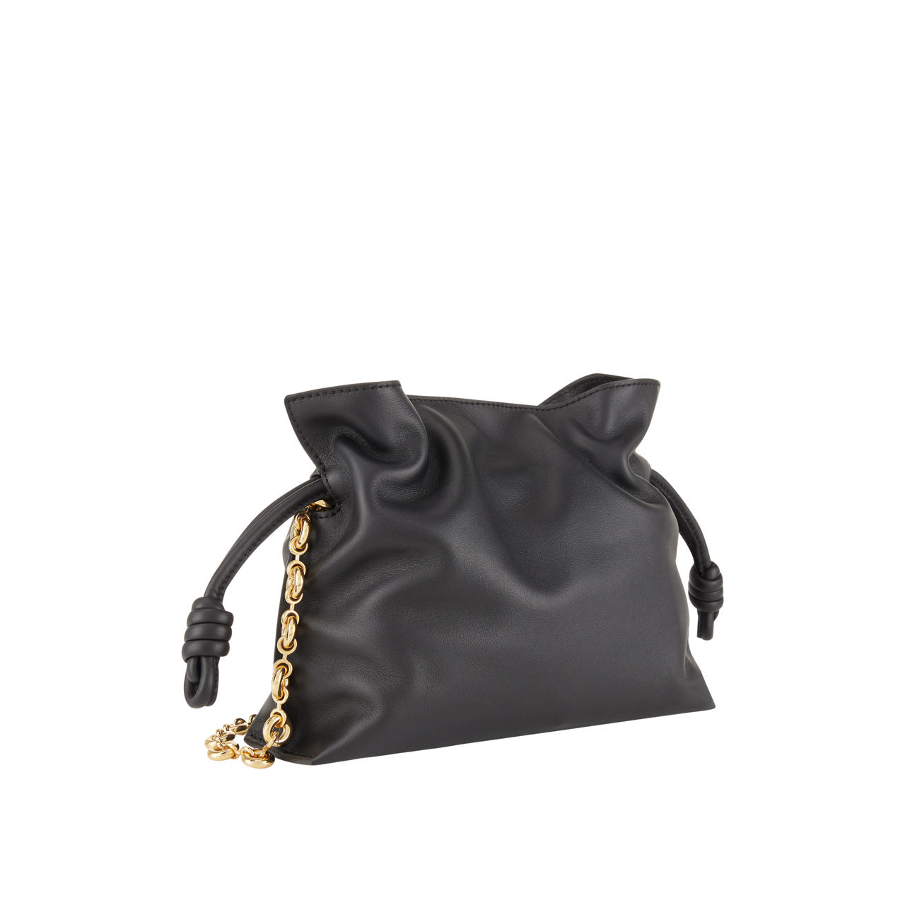 Reimagining Loewe's Flamenco clutch from the '70s, this version is updated with a gleaming chain strap to go handsfree. The compact accessory is crafted from smooth leather, which is detailed with the brand's signature knotted drawstrings and stamped with the anagram logo.