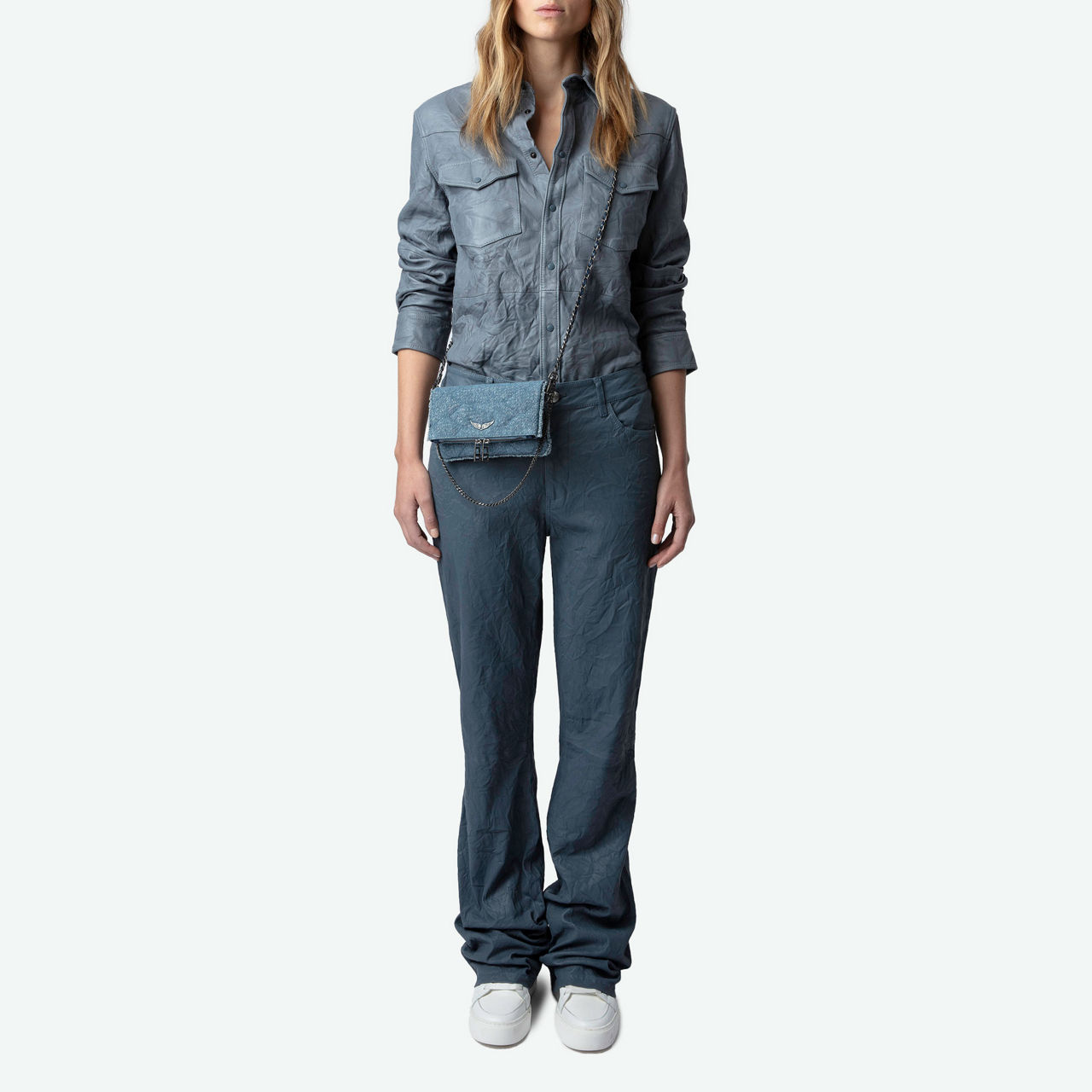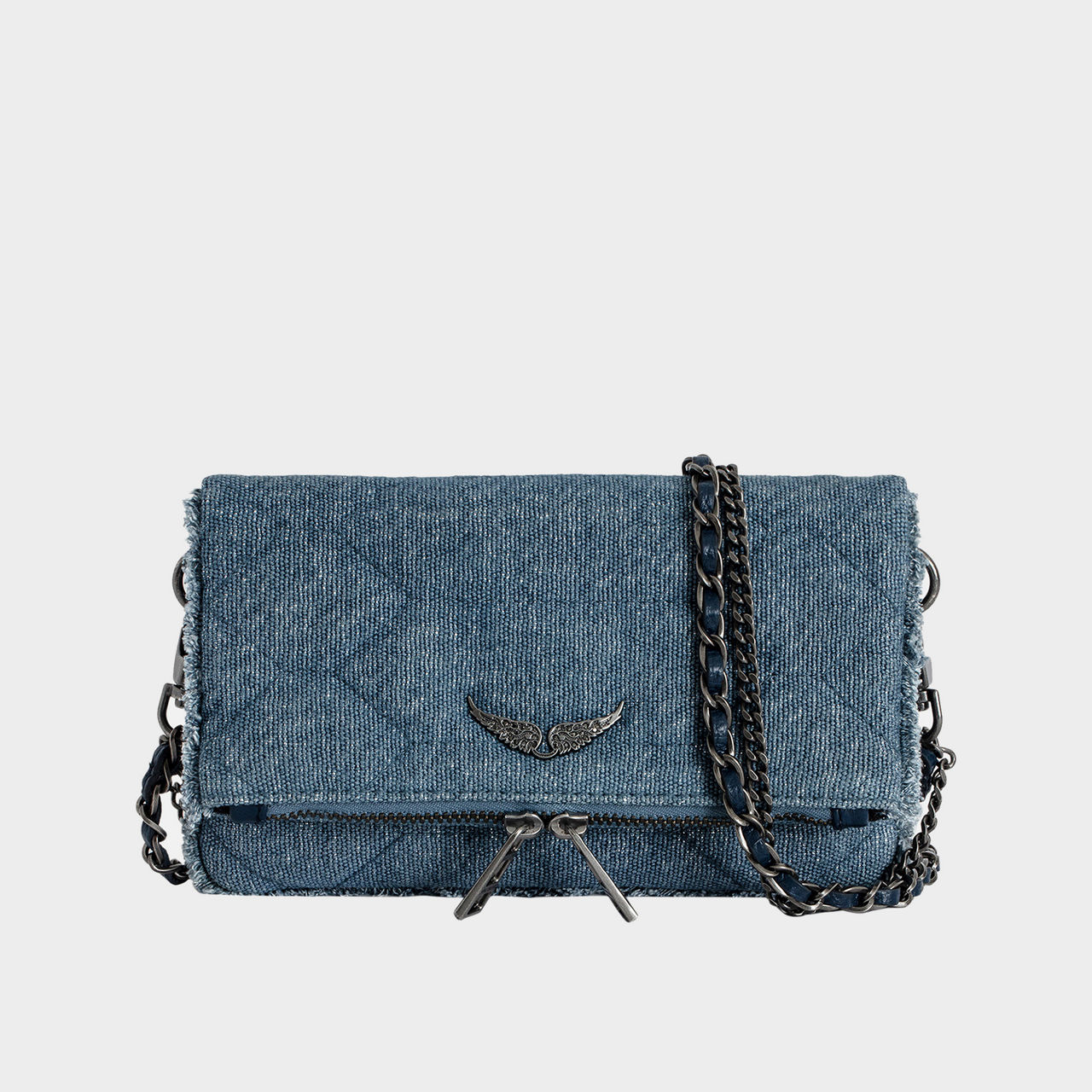 ZADIG&VOLTAIRE Rock Nano Glitter Denim Quilted Clutch Bag