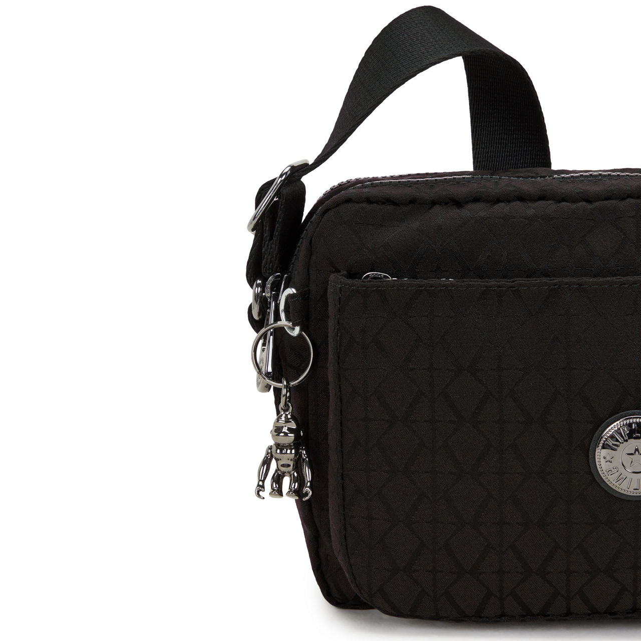 - Top zip fastenings, adjustable shoulder strap, silver-tone hardware, logo badge, Kipling monkey keyring, one back pocket, one front pocket