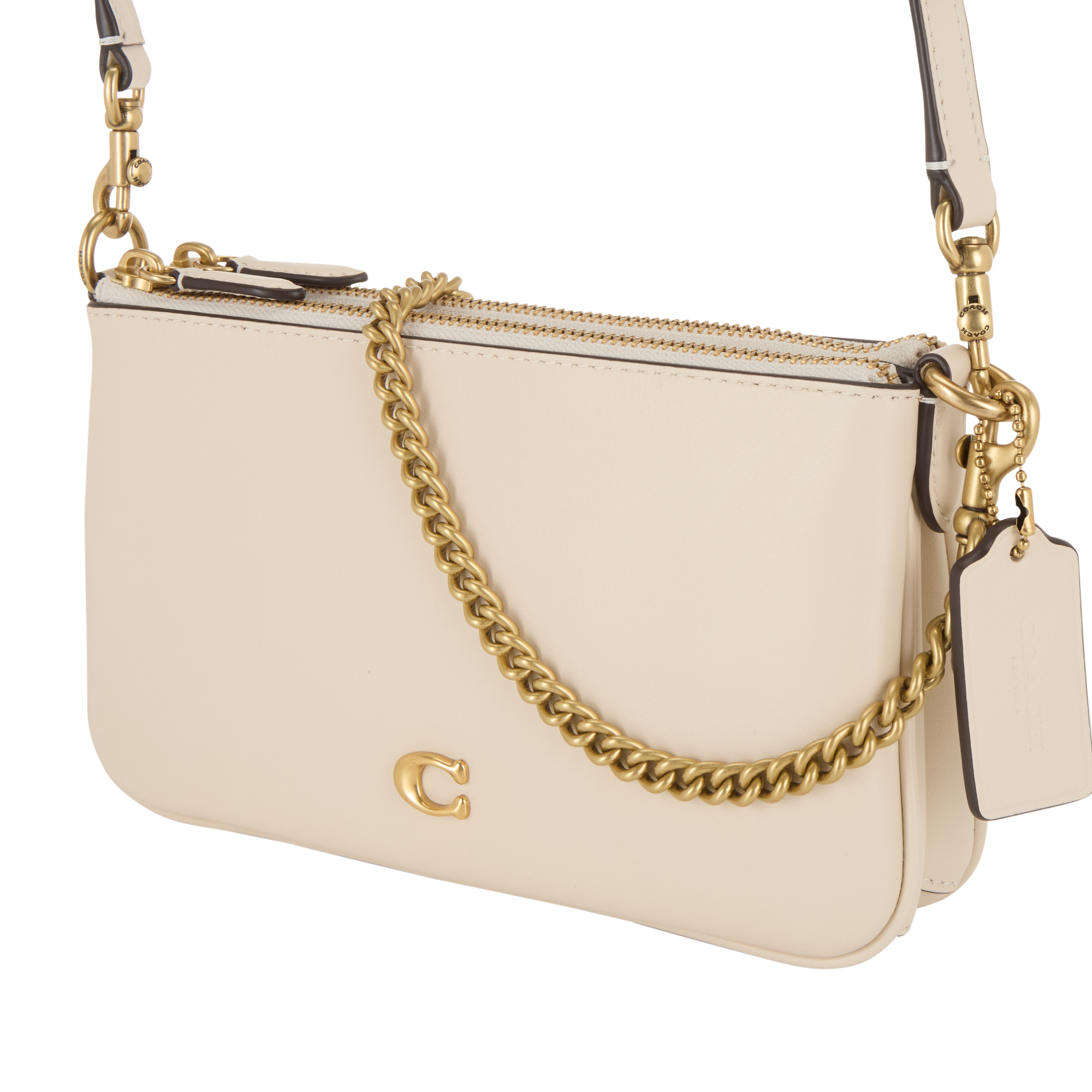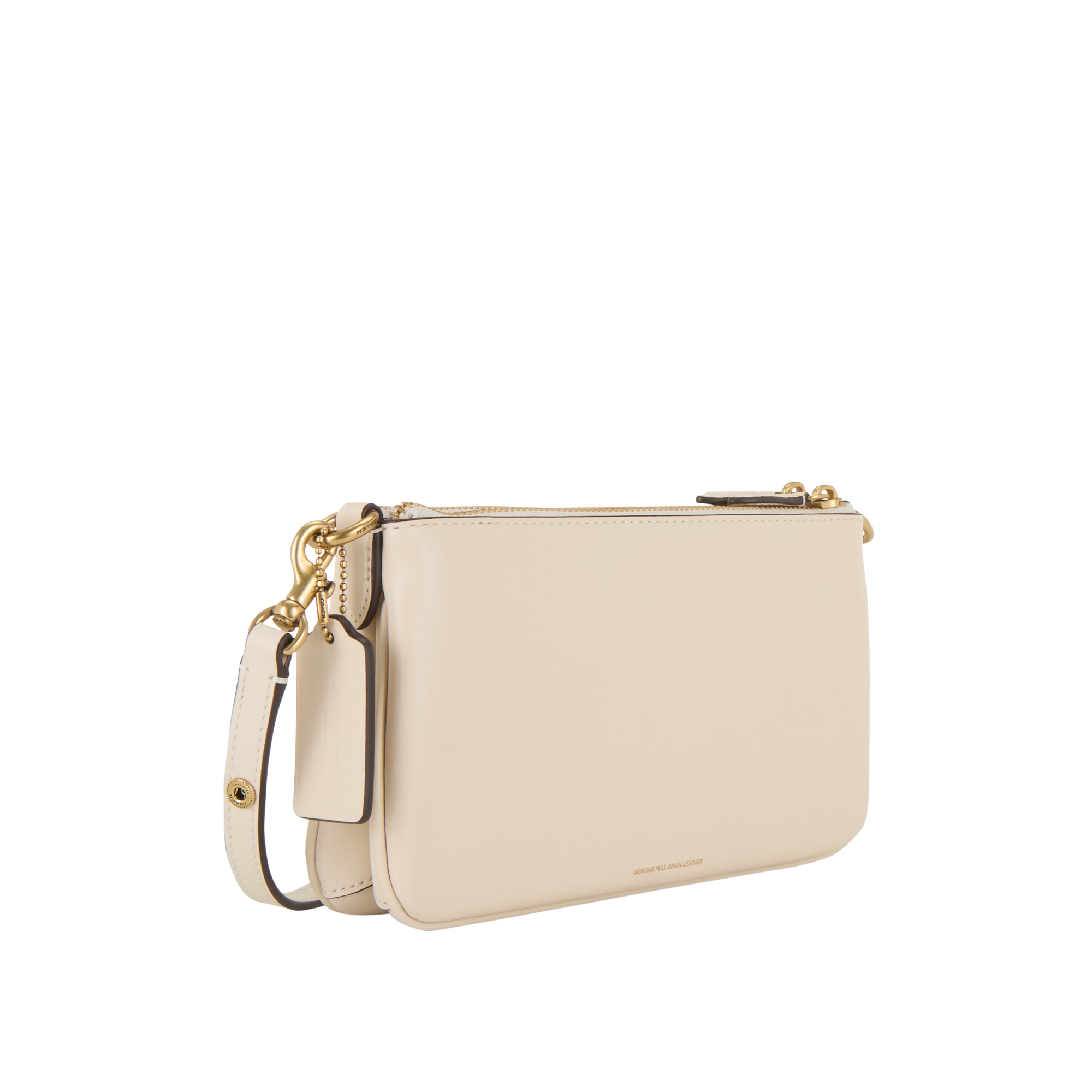- Two zipped compartments, crossbody strap, gold-toned hardware, hanging logo tag