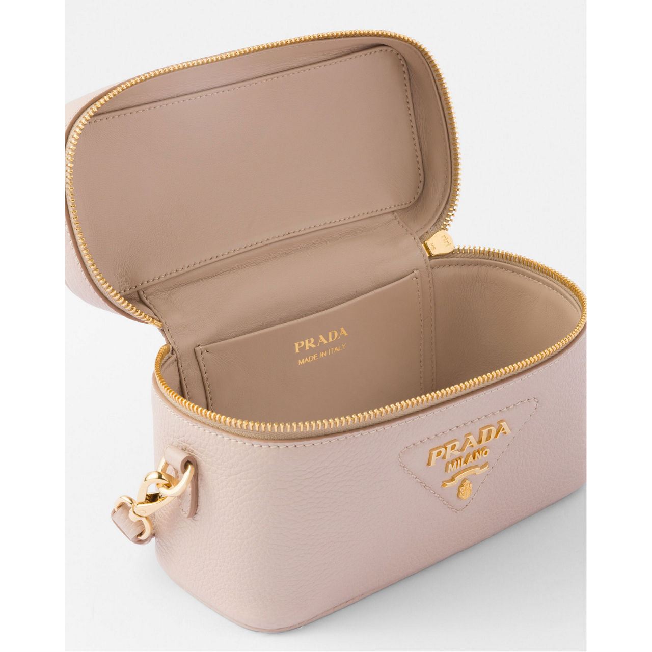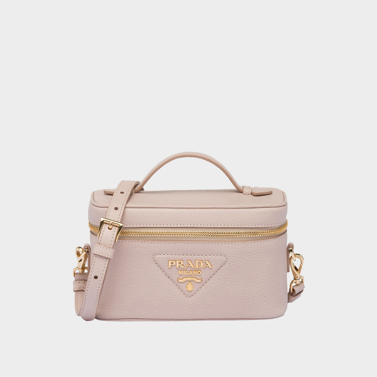Prada’s innovative design philosophy is evident even in its simplest creations. Compact and practical, this bag has a vintage silhouette reminiscent of a travel jewellery box, crafted to be carried by hand as you hop on a train to your next destination in true 1950s fashion. With the iconic signature metal logo on the front and ample space for your belongings, it makes an elegant and timeless accessory.
