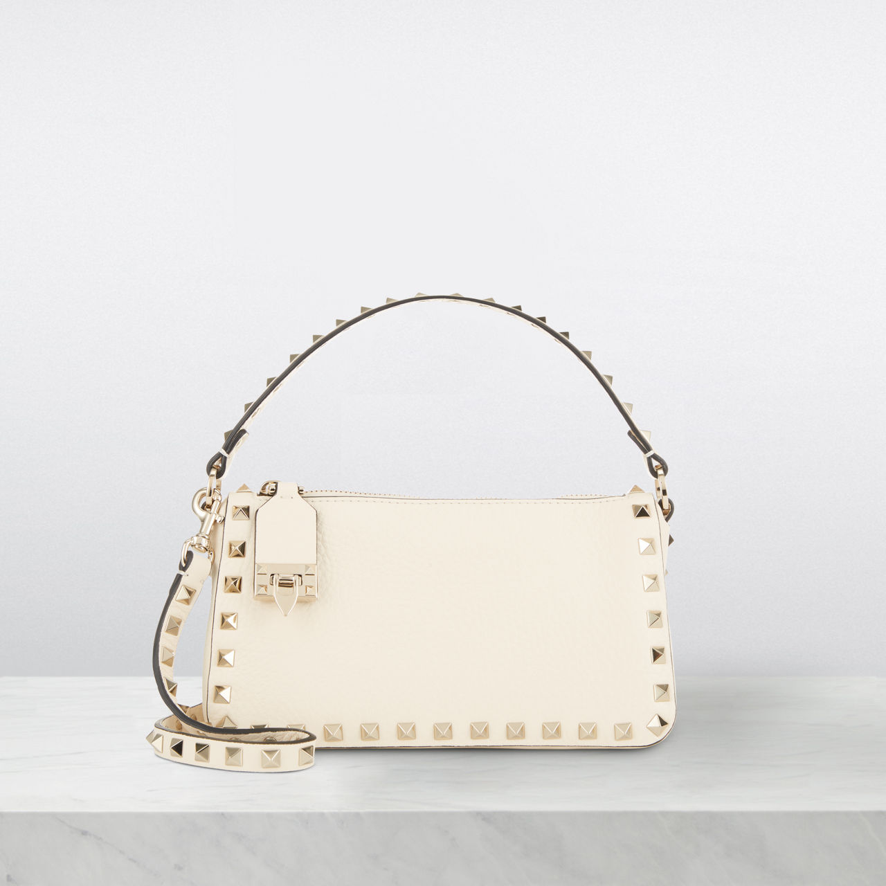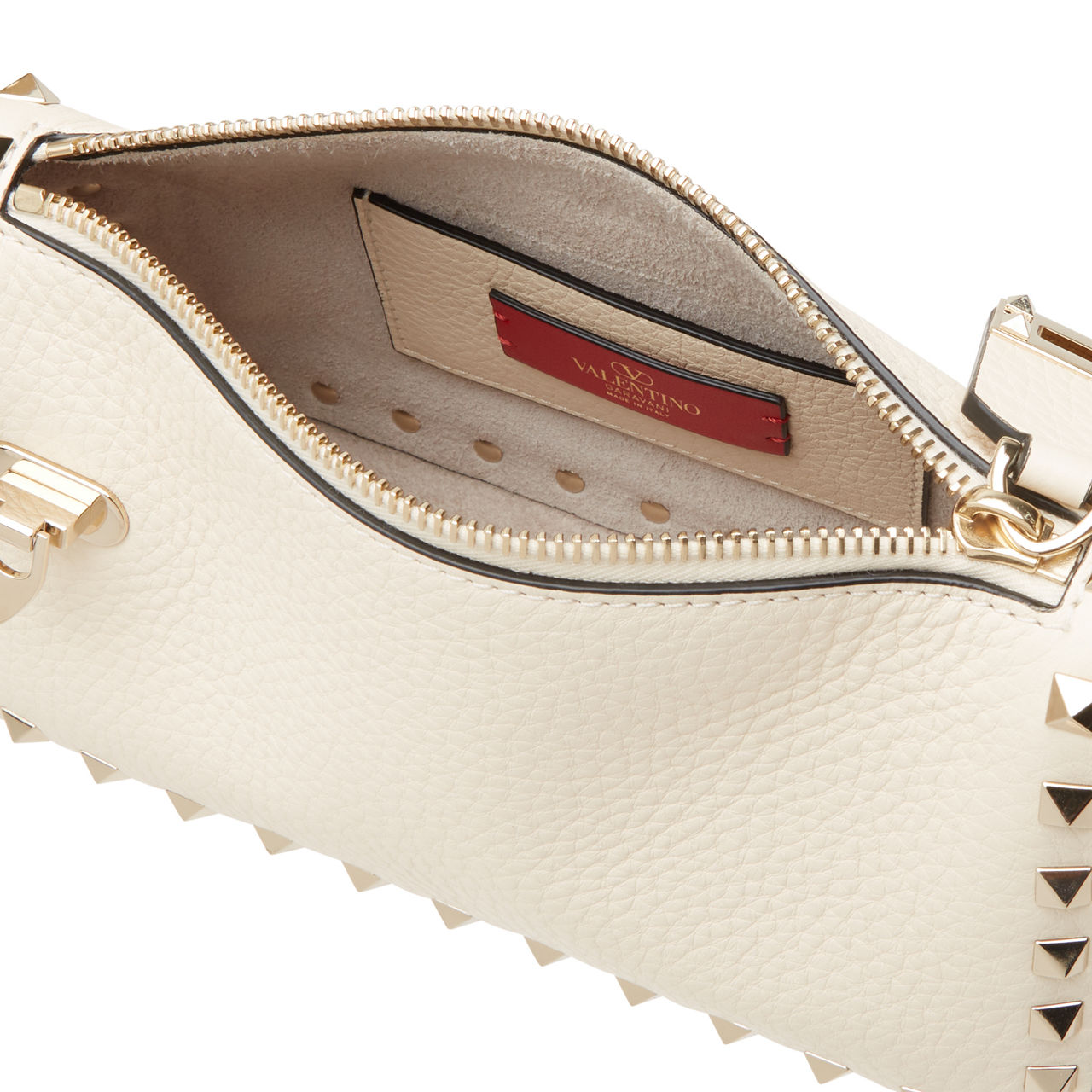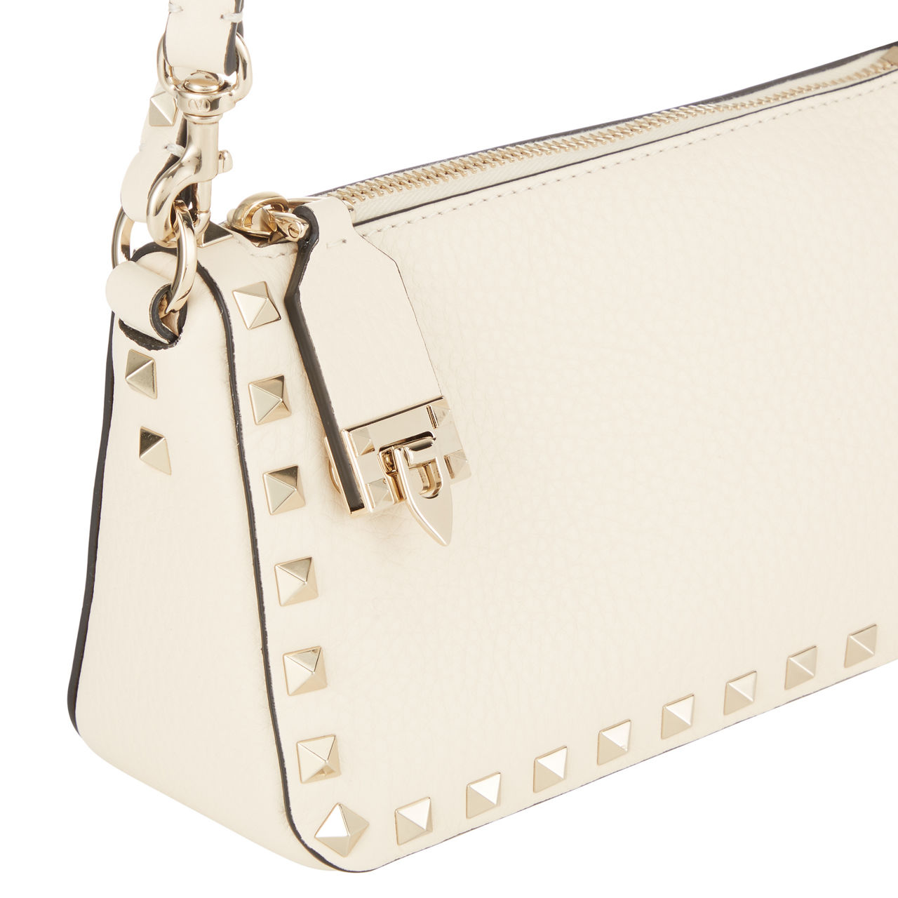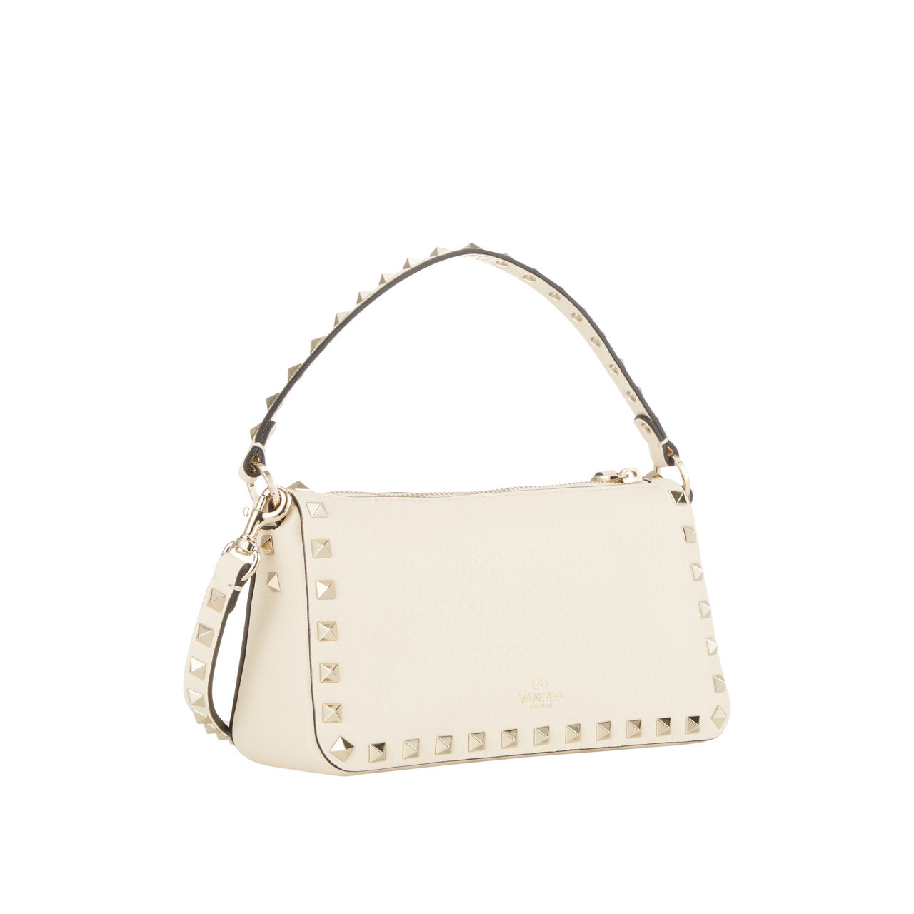 - Shoulder strap, adjustable detachable crossbody strap, top zip-fastening closure with secure clasp fastening, signature Rockstud detailing, logo branding on back, tonal stitching, grained leather finish
