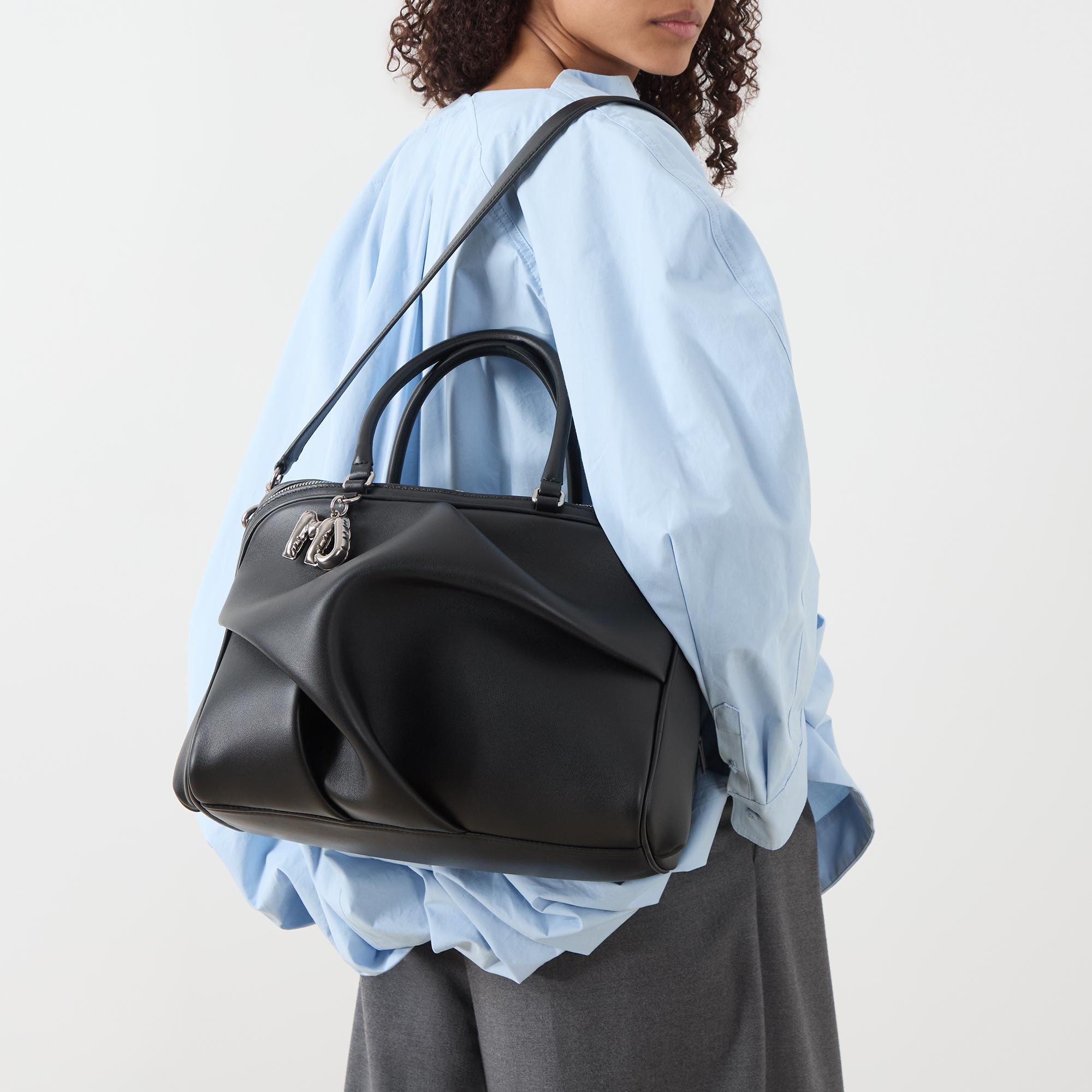 • Top carry handle, detachable and adjustable straps, silver-tone hardware, slouchy silhouette, sculptural 3D wave detail, balloon-inspired logo charms