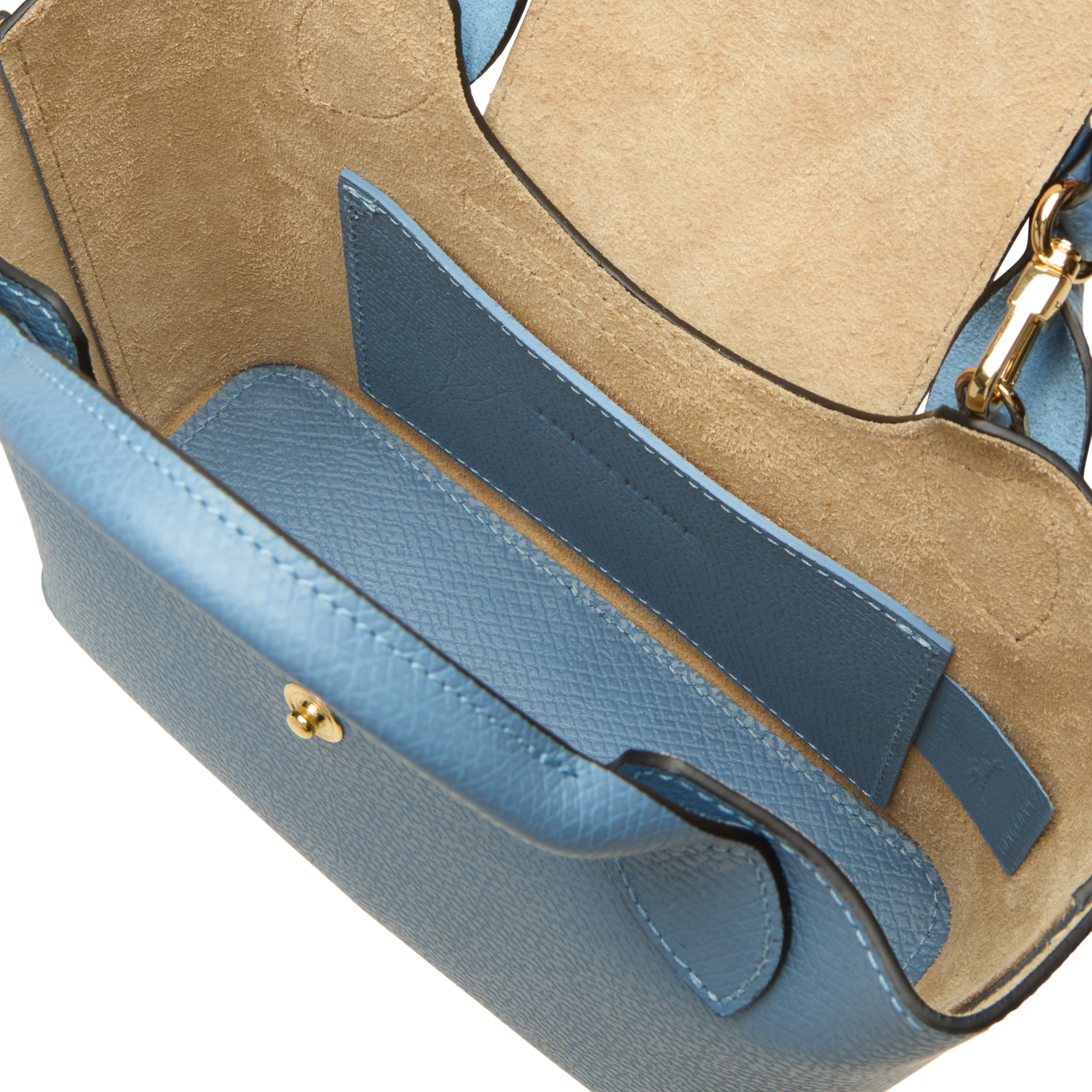 - Interior: One main compartment, one slip pocket, embossed logo detail, lined