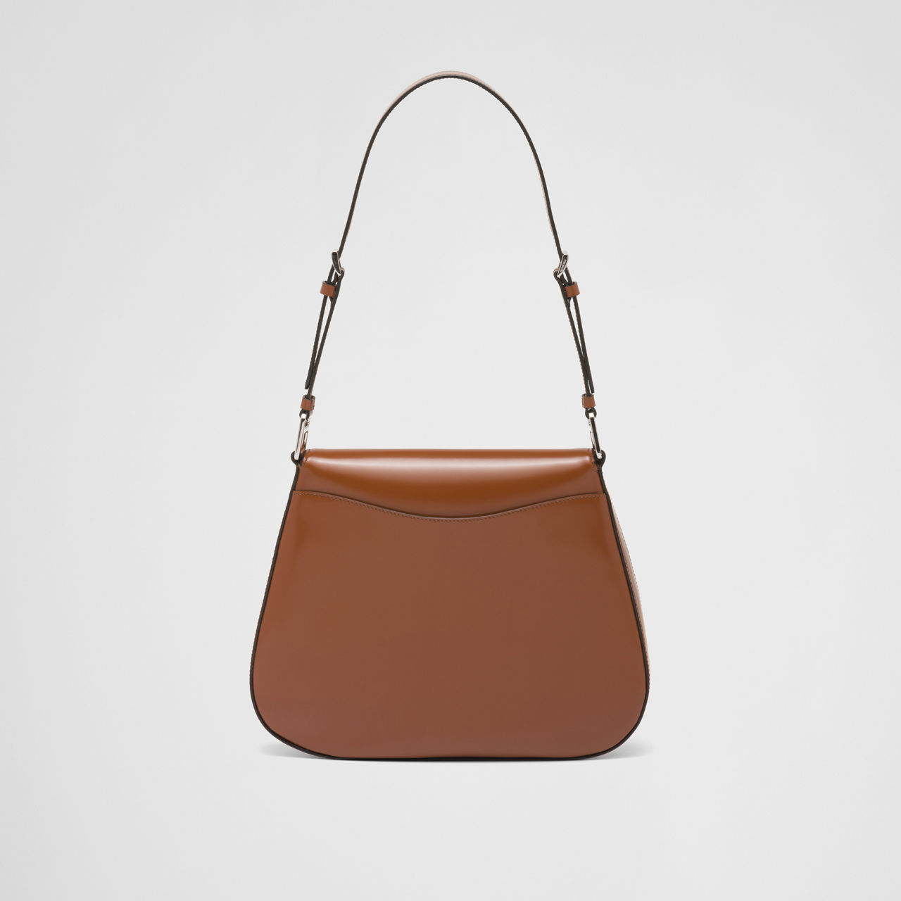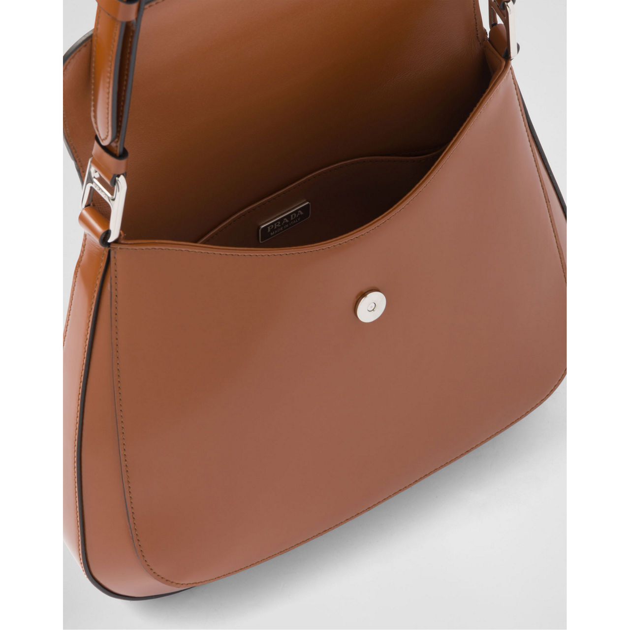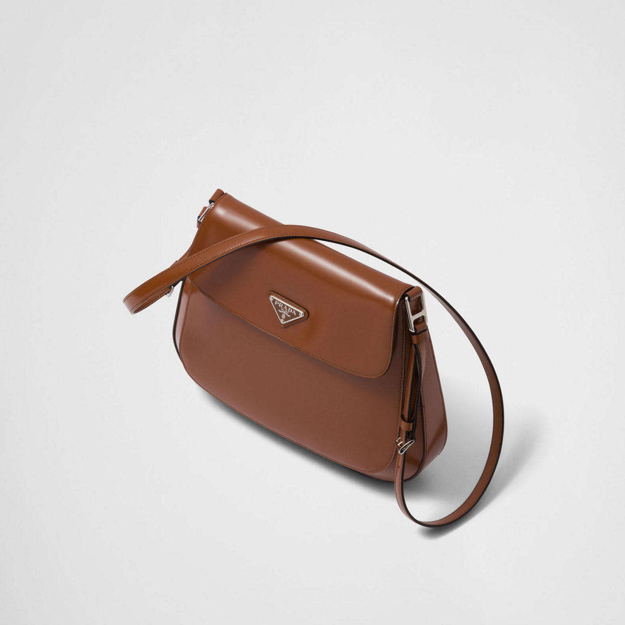 The Prada Cleo bag offers sophisticated allure, drawing on the House's extensive archives to bring a '90s silhouette to a modern and sleek design. With a rounded base and a strap that allows cross-body and shoulder wear, this style is crafted in brushed leather and finished with an enamelled triangle logo to the flap in order to craft a timeless bag with versatile style.