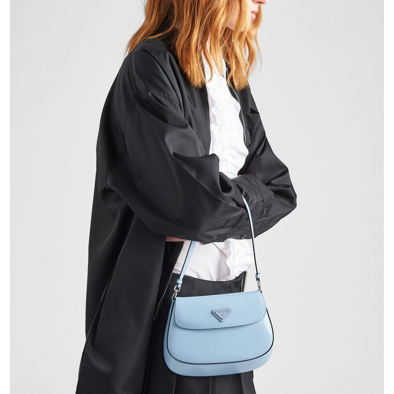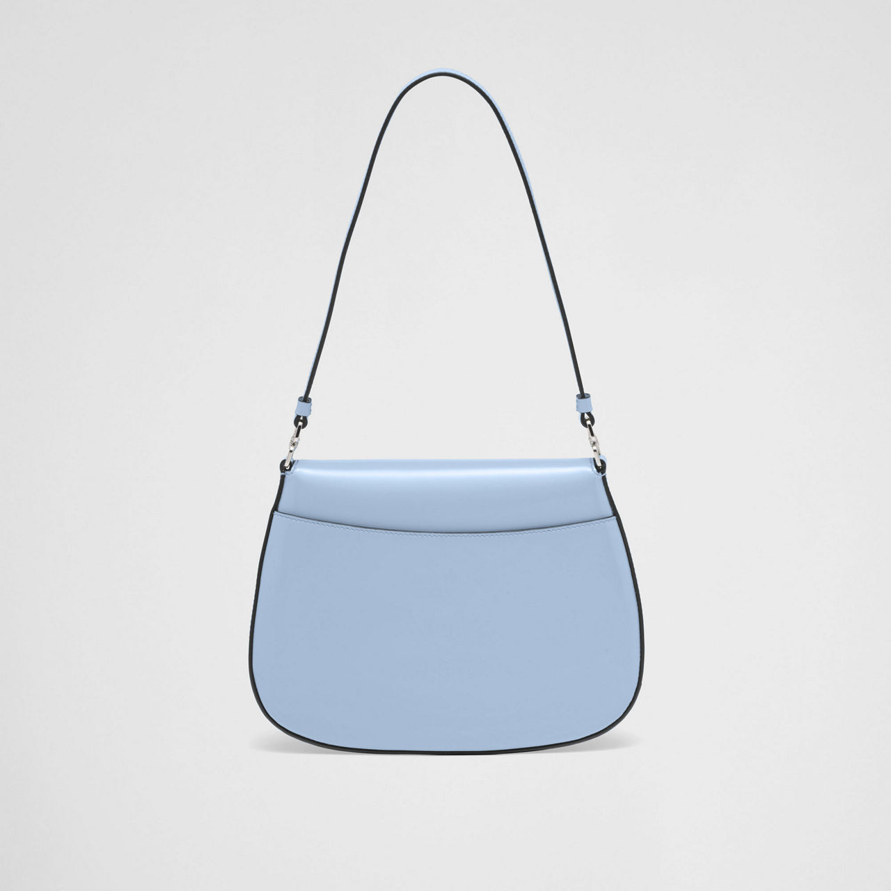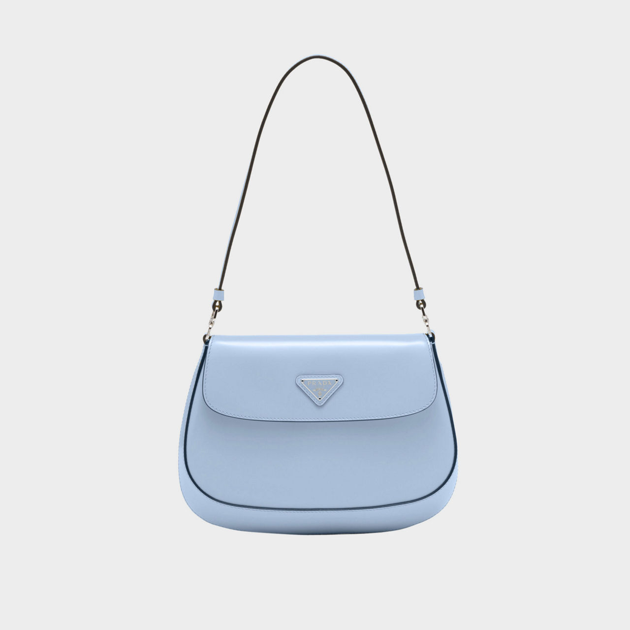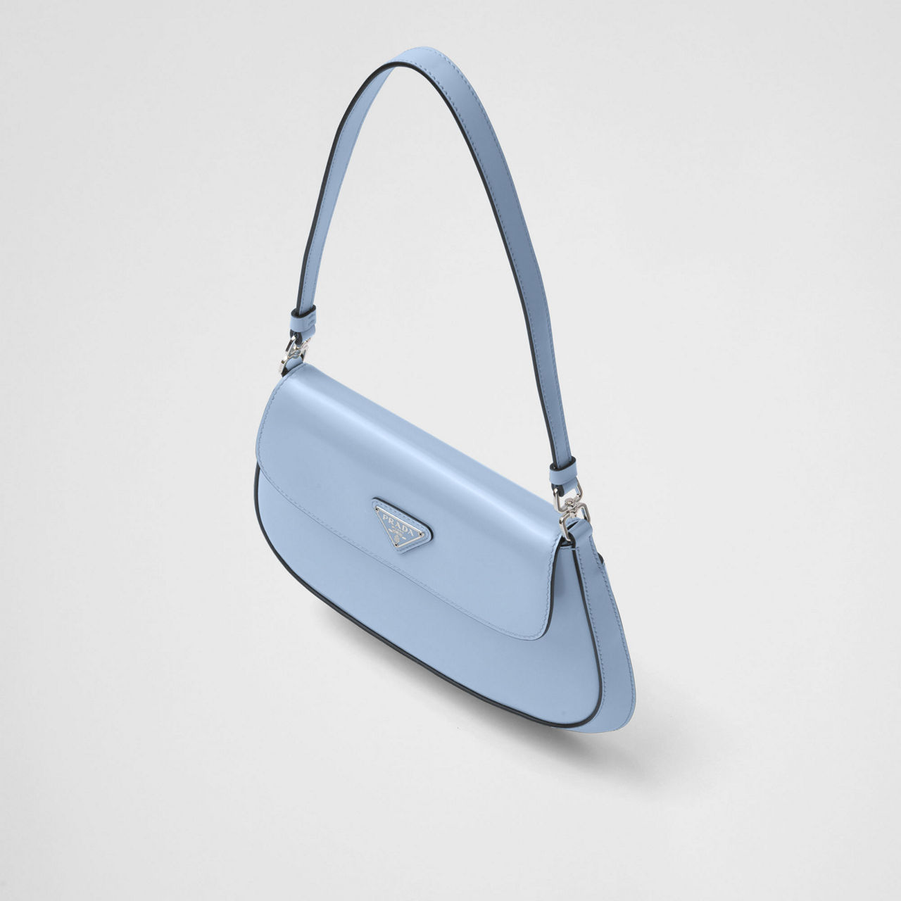 Designed with a rounded base and neat, singular strap, this shoulder style from Prada works brushed leather and an enamelled brand logo to craft a timeless bag with versatile style.
