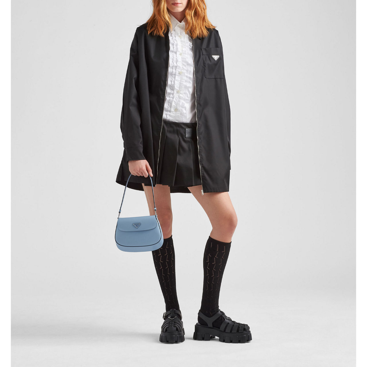 - Interior: Prada logo nylon lining with patch pocket.