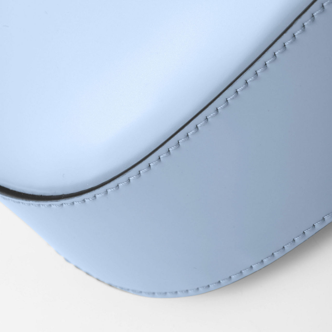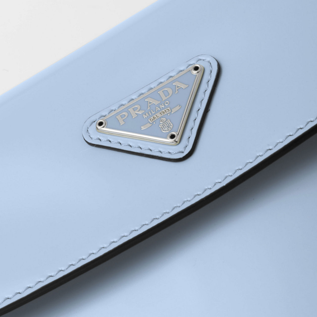 - Brushed leather, leather handle, metal hardware, enamelled metal triangle logo on the flap, magnet closure.