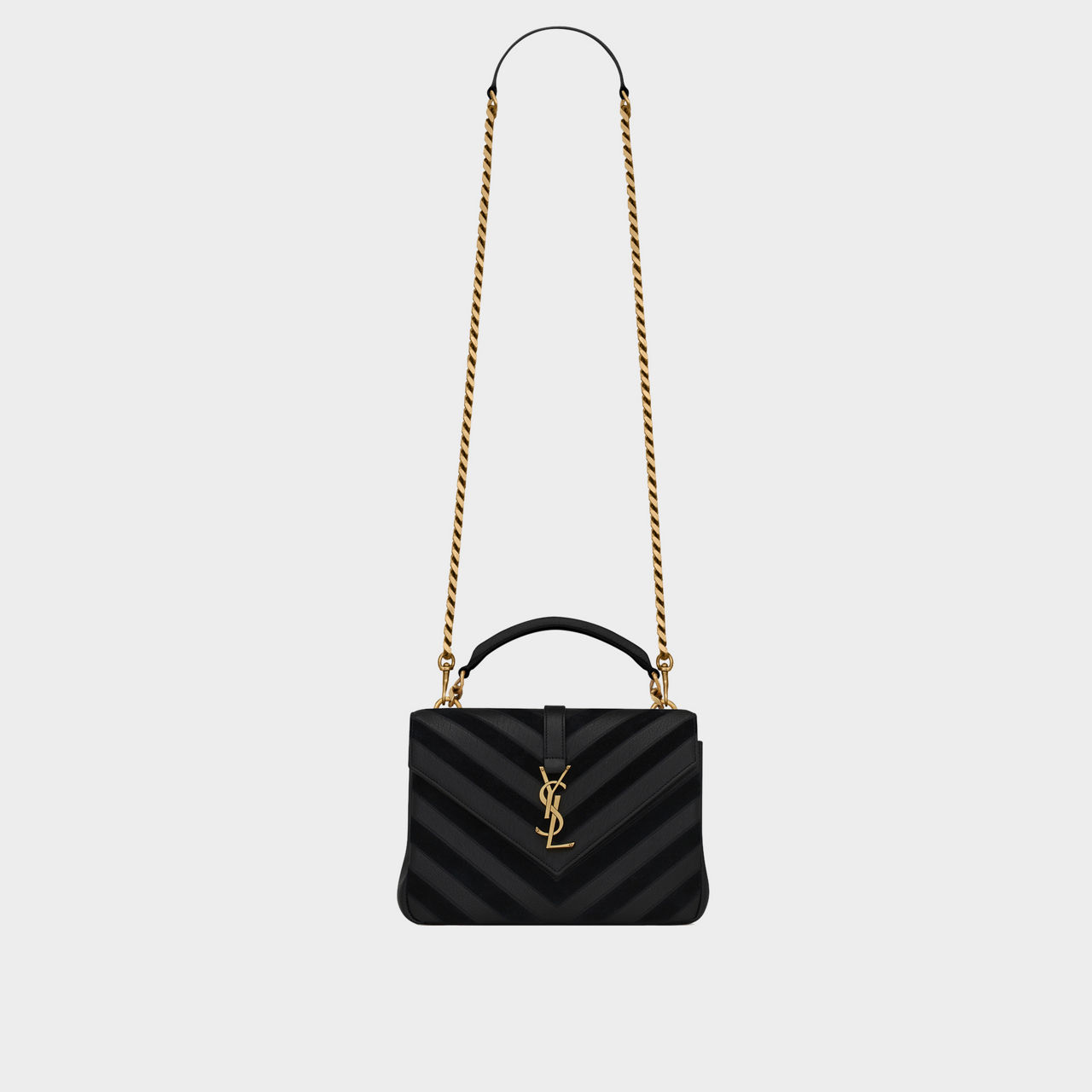 SAINT LAURENT College Chevron Patchwork Leather Bag