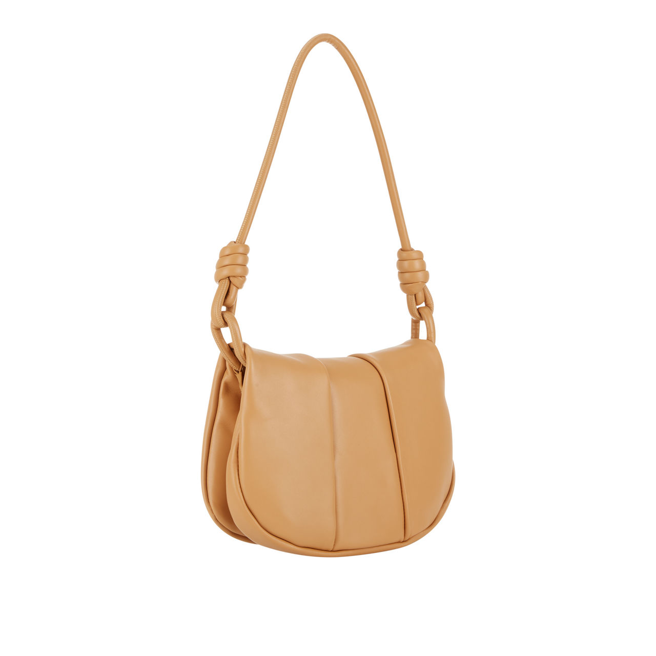 - Shoulder strap, knot details, flap closure with magnetic button fastening, logo branding, smooth leather finish