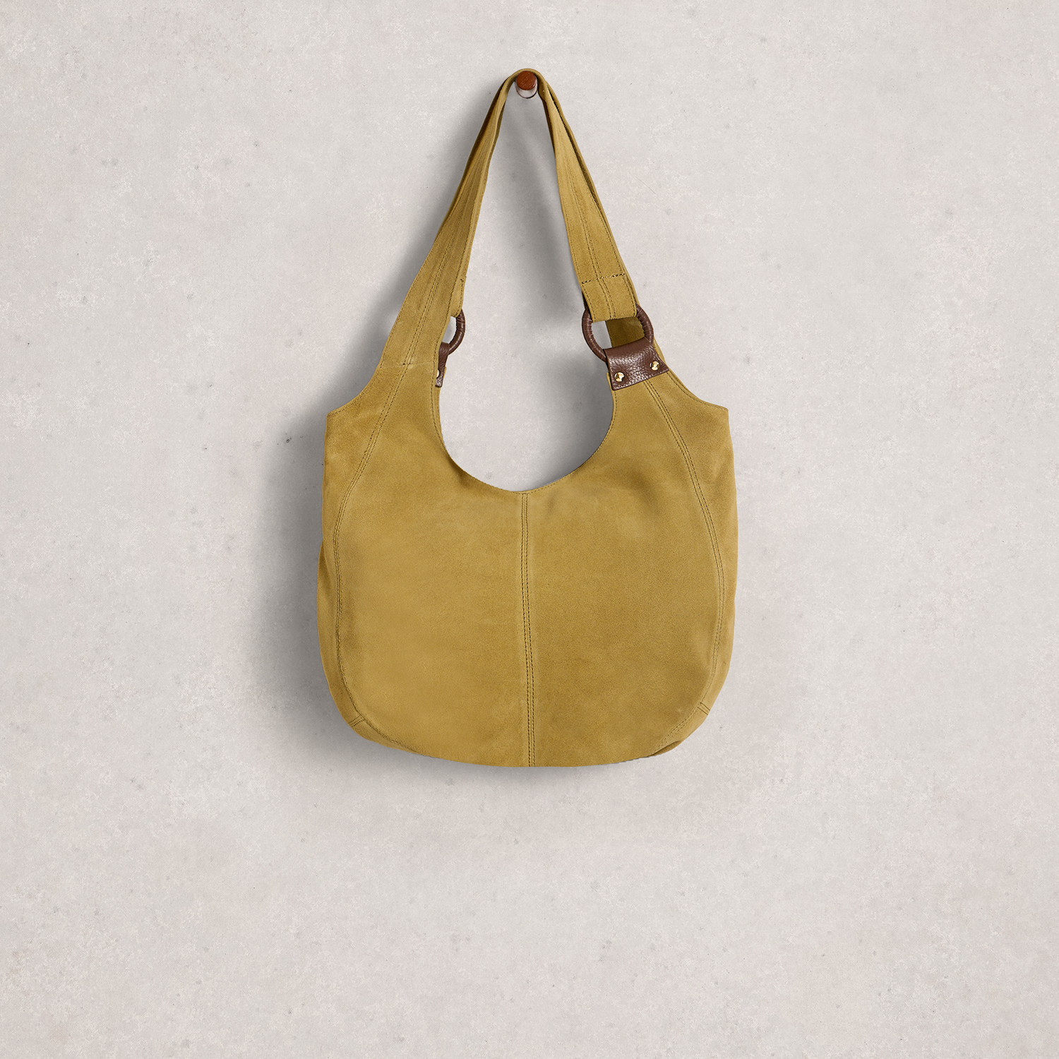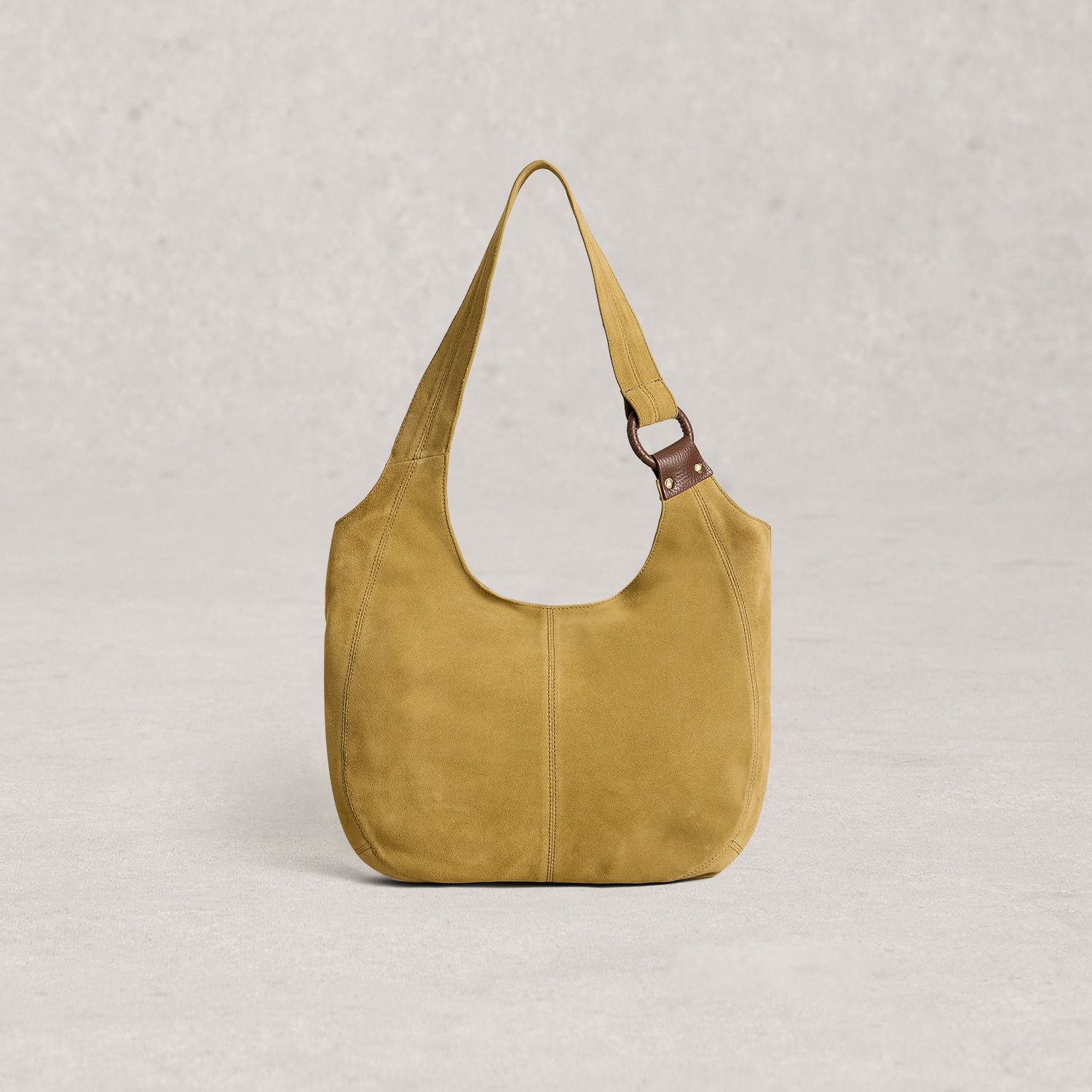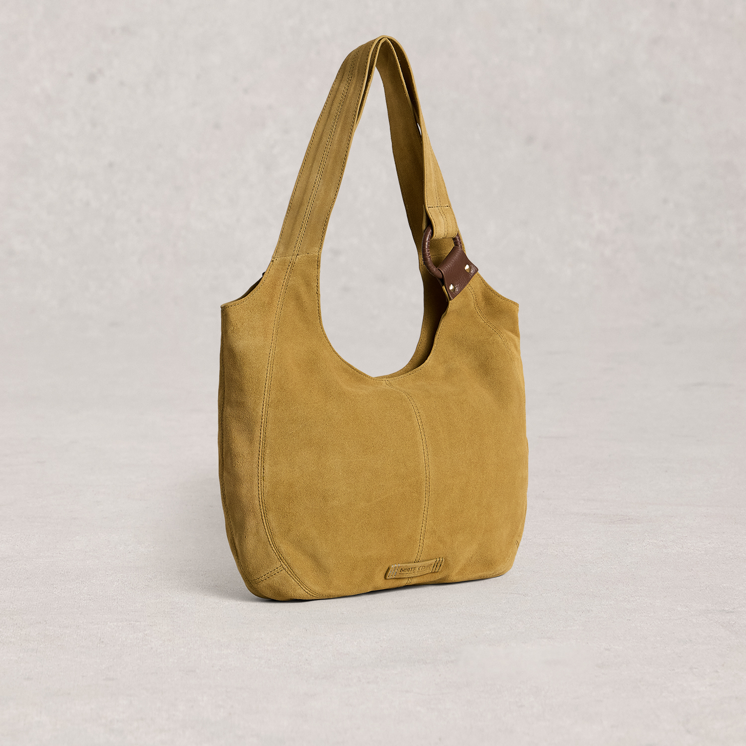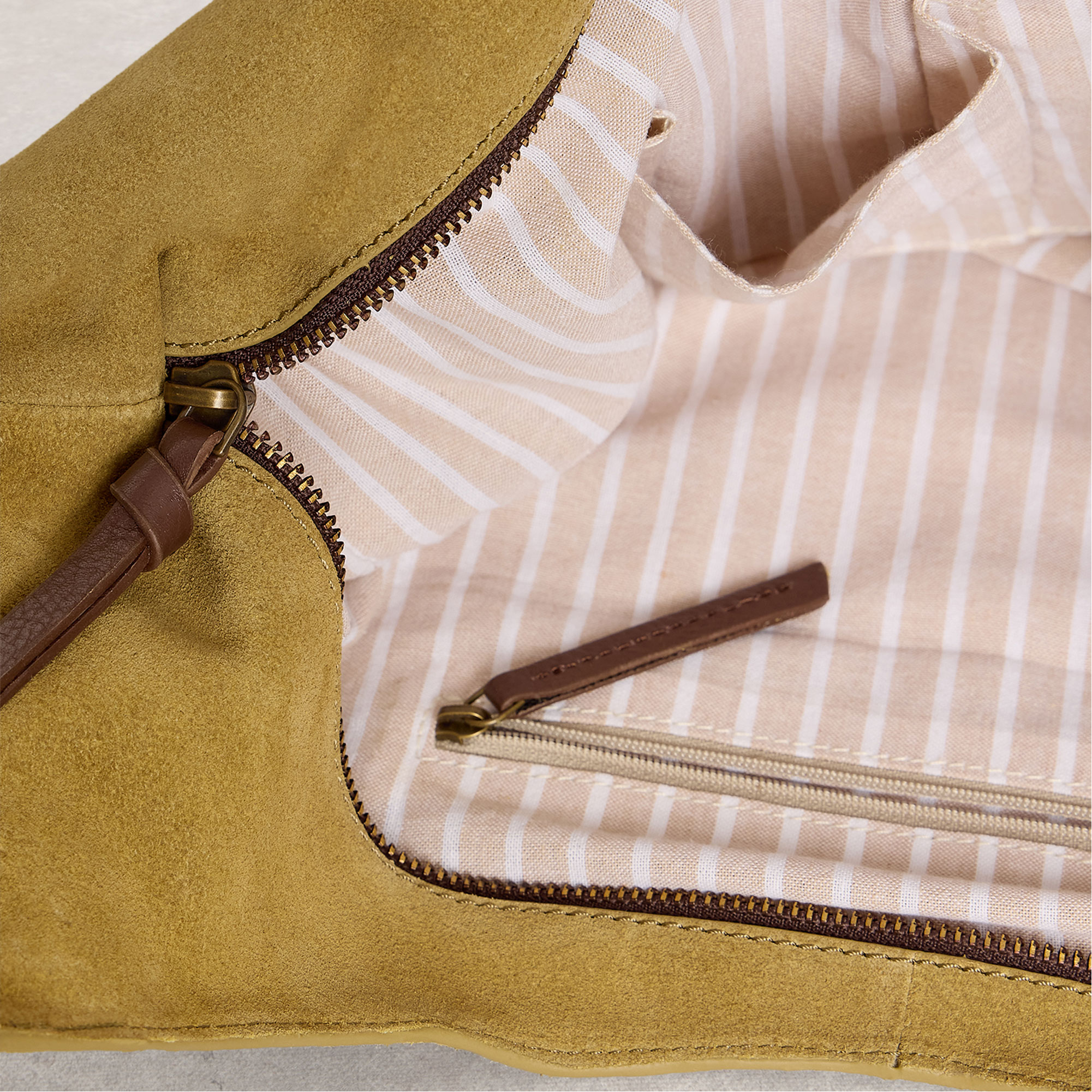 - Slouchy shoulder style, suede, zip fastening, large tote, leather-wrapped hardware