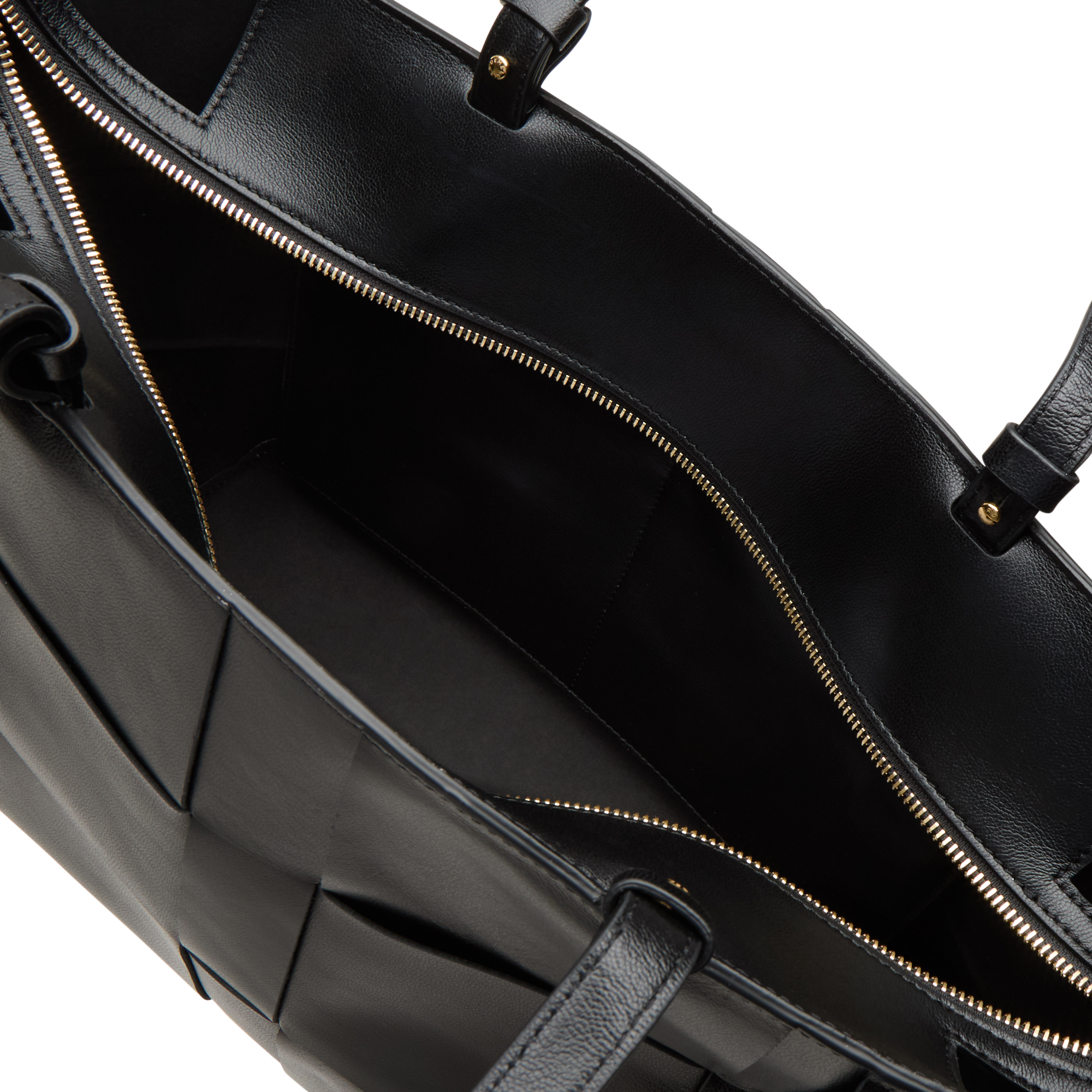 • Adjustable shoulder straps, top zip fastening, intricately handwoven design, foil logo detail, gold-tone hardware, relaxed silhouette