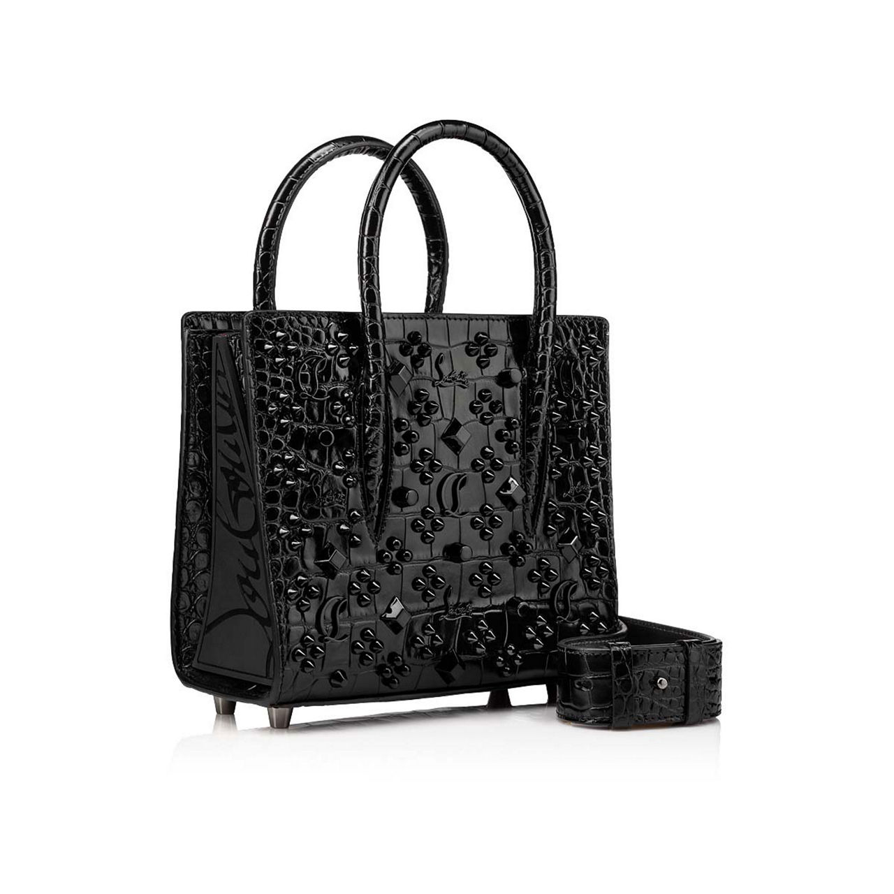 High-shine leather meets tone-on-tone embellishment via stud work and signature details across the design of Christian Louboutin's Paloma Mini style. A statement design for everyday use, this is a top-handle mini tote with immediate visual impact.