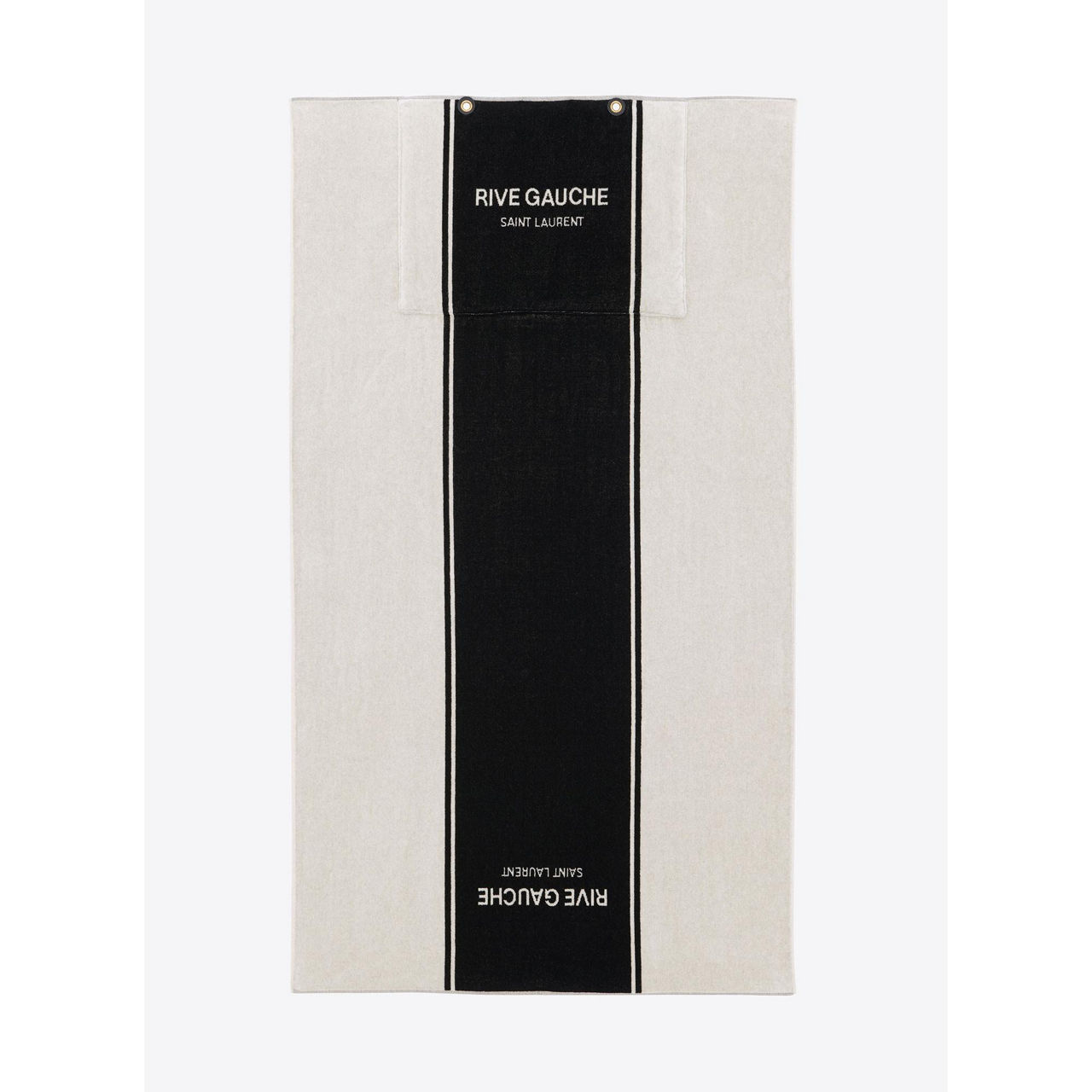 A chic beachside bag that is ideal for toting the holiday essentials. This Saint Laurent tote is made from terry towelling and is fitted with dual shoulder straps. In a colour block design, it is stamped with the brand's Rive Gauche slogan- the collection that marked a new era for fashion in the '60s.