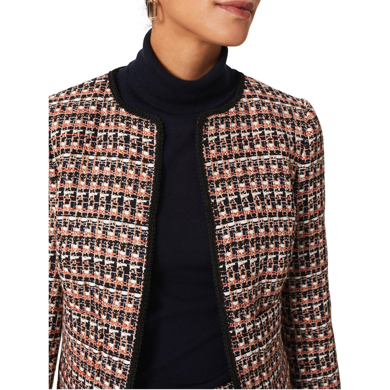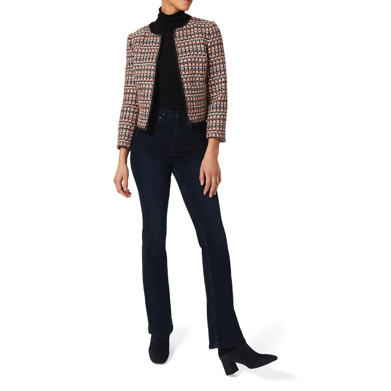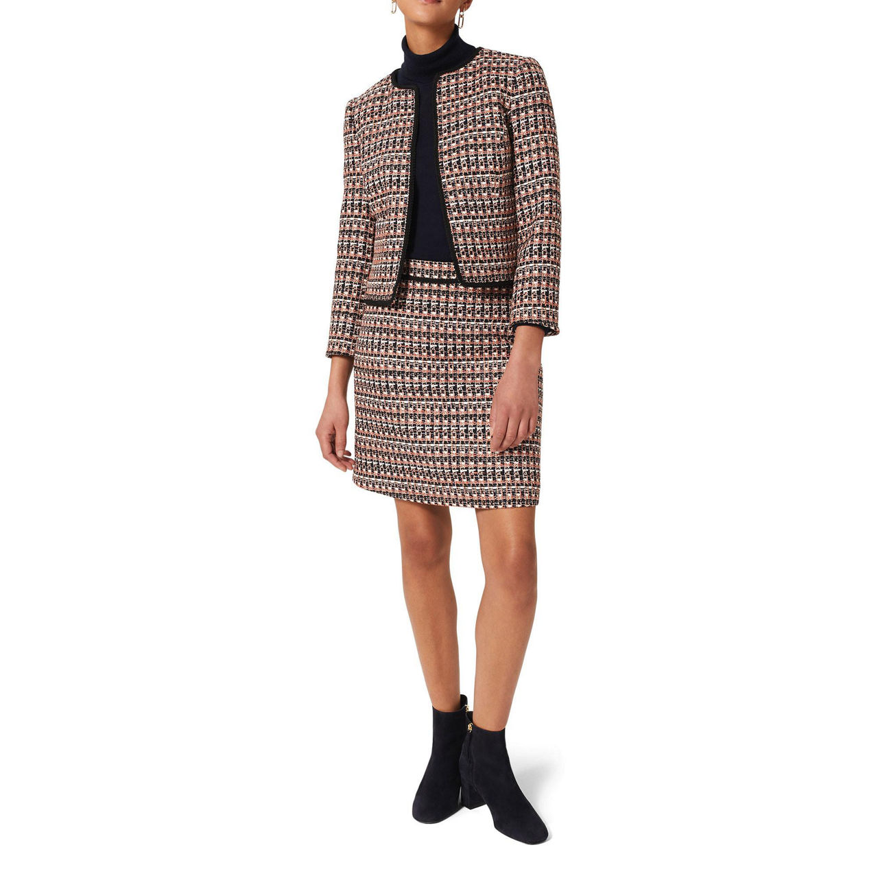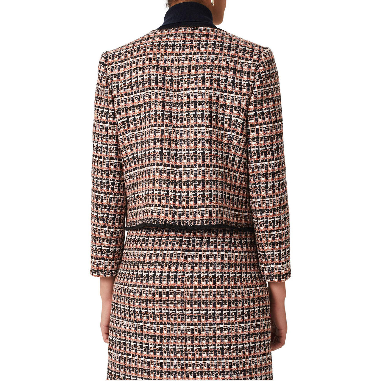 A modern take on classic tweed, the Allie jacket from Hobbs works a versatile crop fit that can easily be dressed up with the coordinating skirt or worn casually with denim.