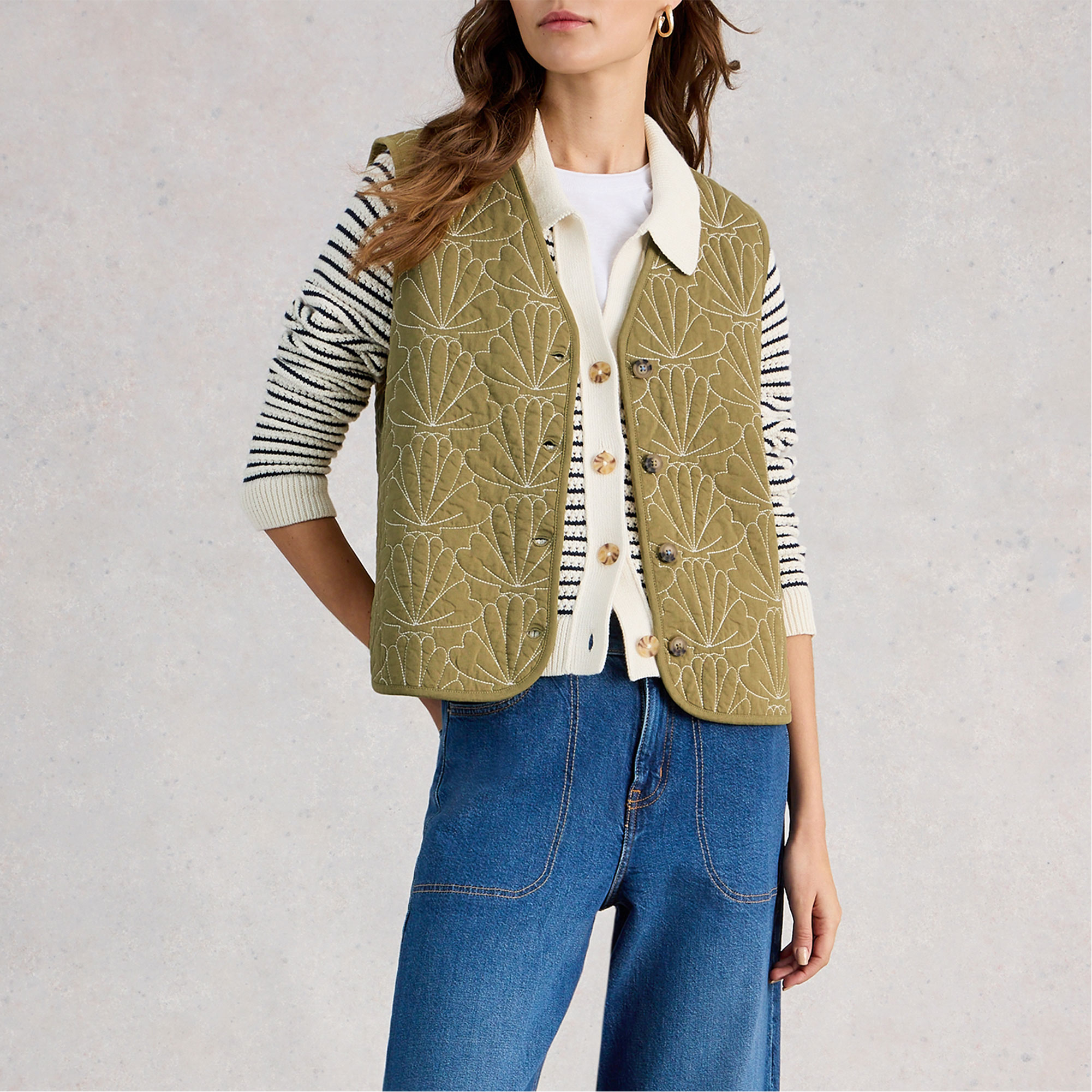 WHITE STUFF Ayra Embroidered Quilted Gilet