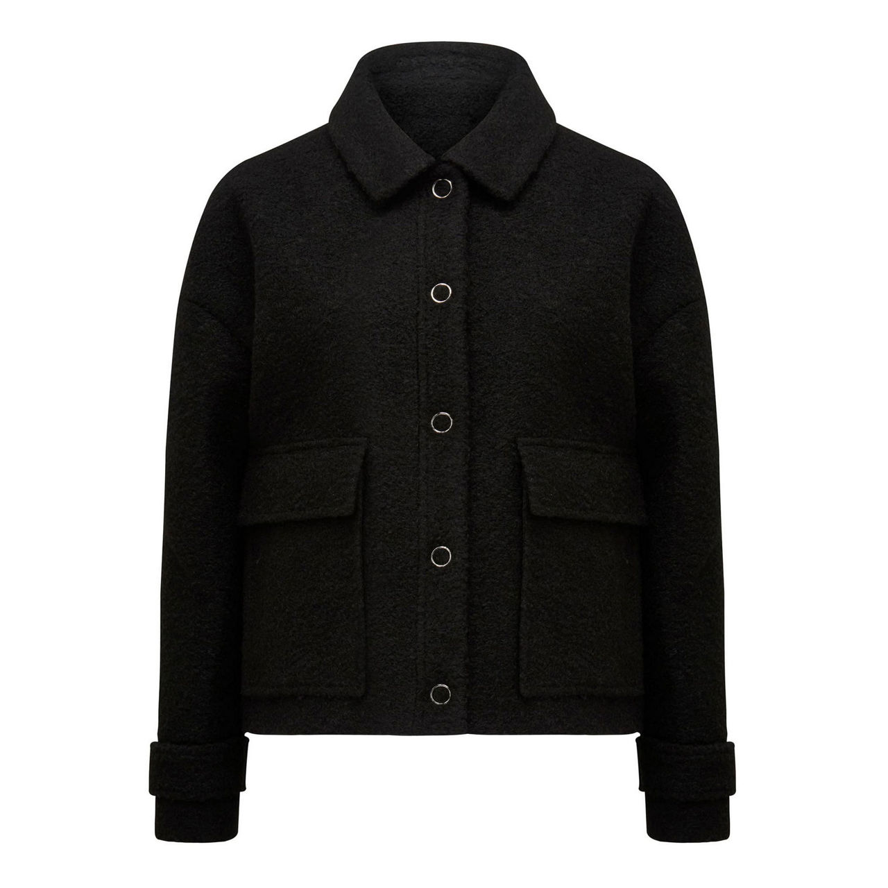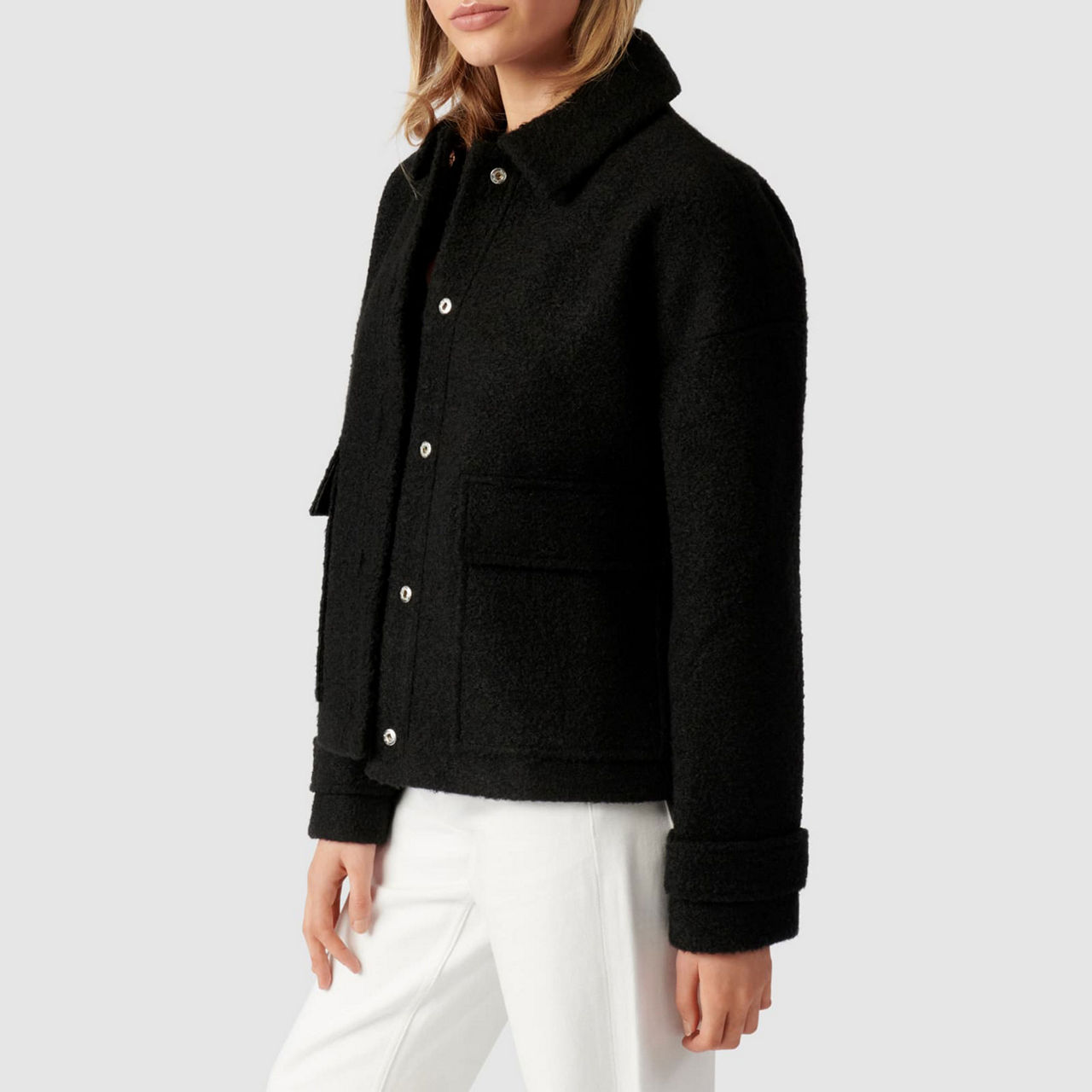 - Long sleeve, collar, crop fit, boxy, pockets, button fastening.