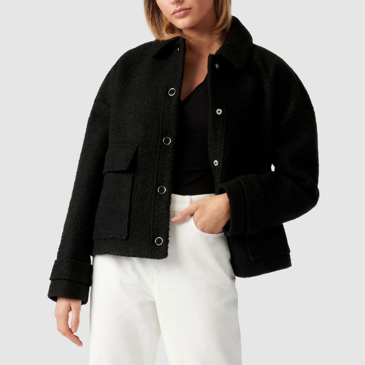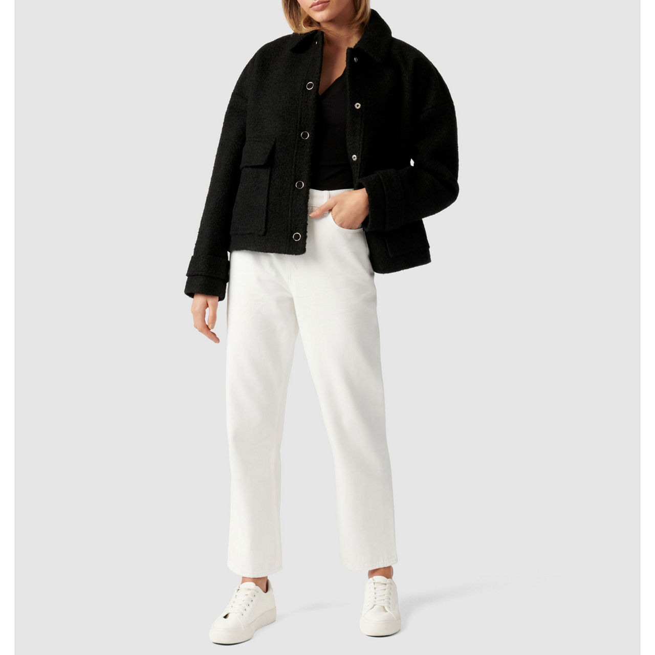 On trend for this season, the Melenie jacket from Forever New works a cropped, boxy fit and a soft, textured finish. Team with a cosy knit and vintage denim for an effortless casual look this season.