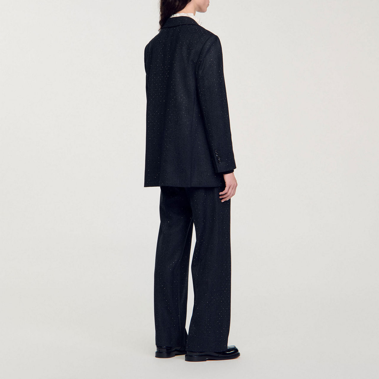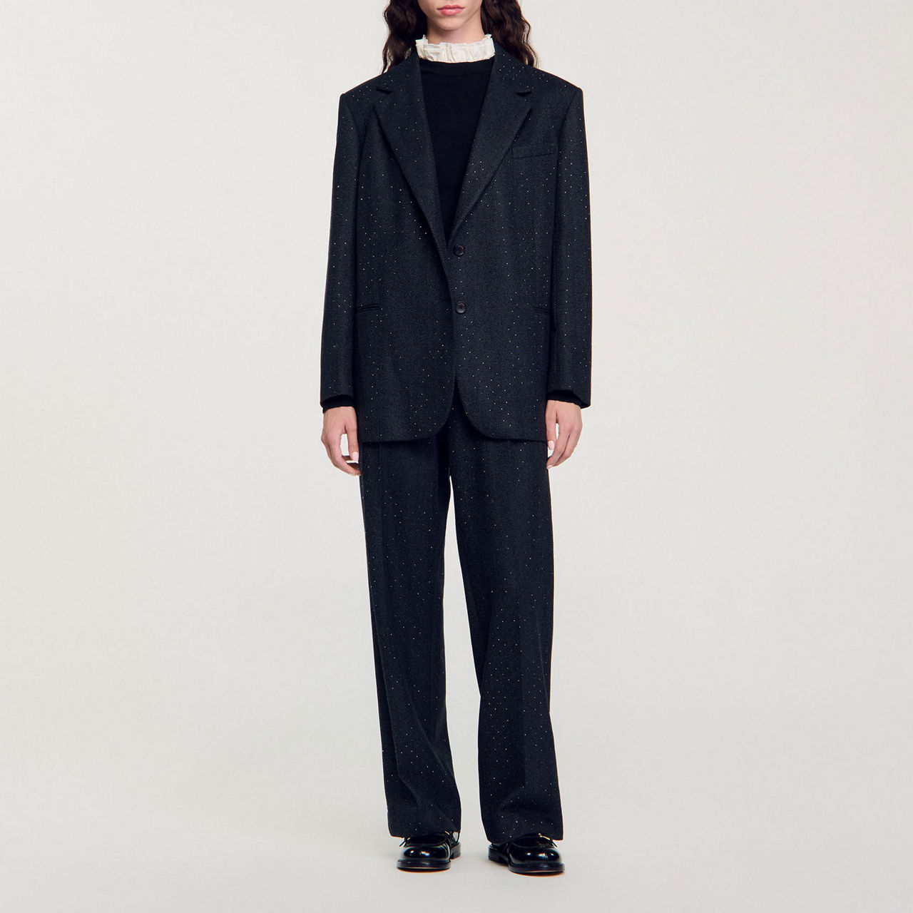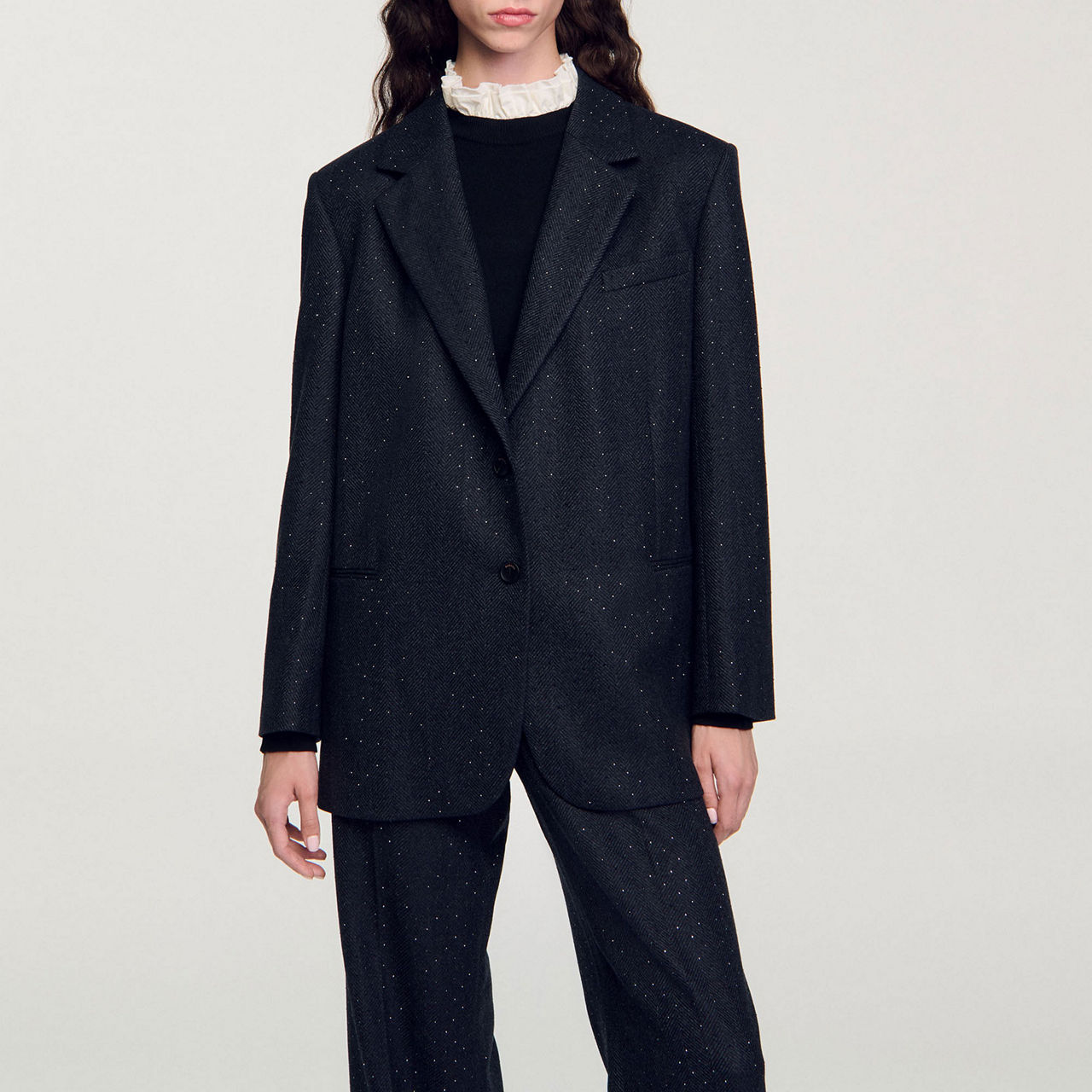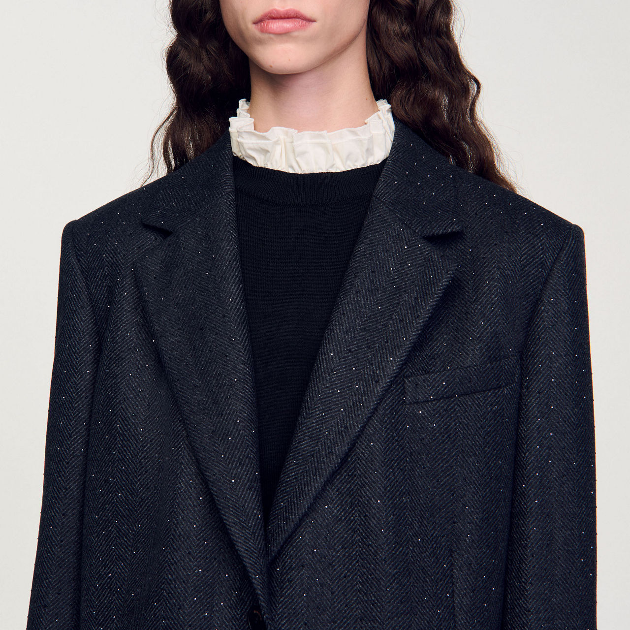 - Long sleeves, single-breasted, front button fastenings, notch lapels, chest pocket, jetted pockets, herringbone pattern, embellished finish