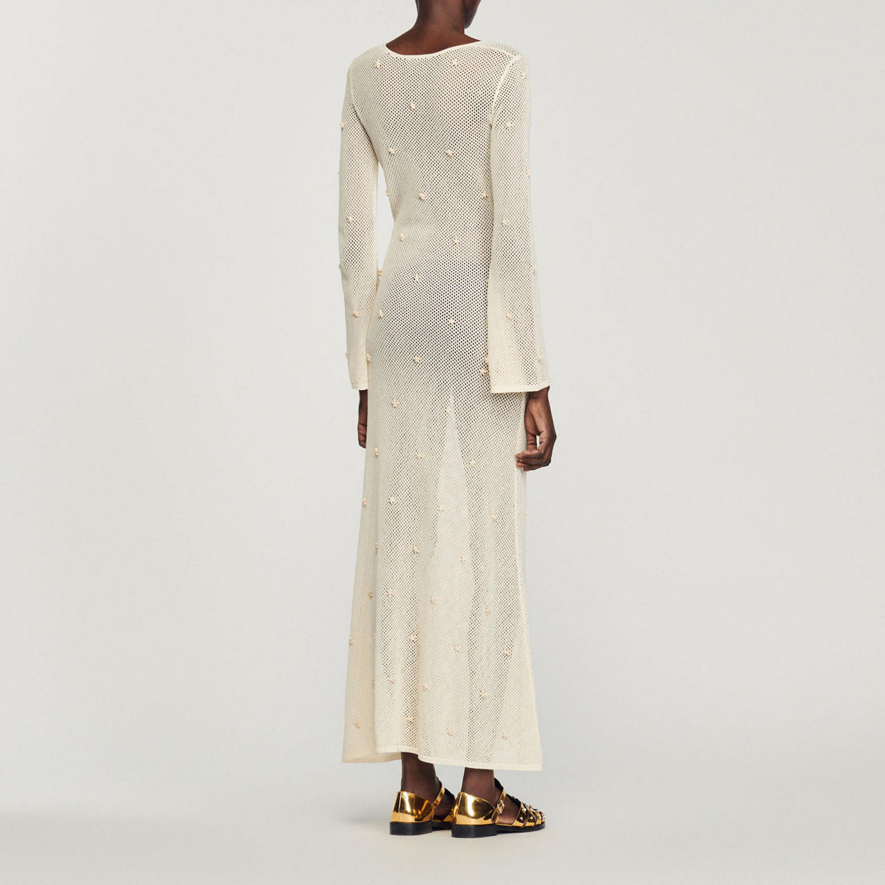 SANDRO Coquillage Mesh Maxi Dress