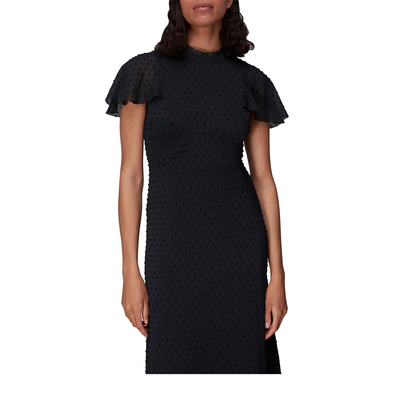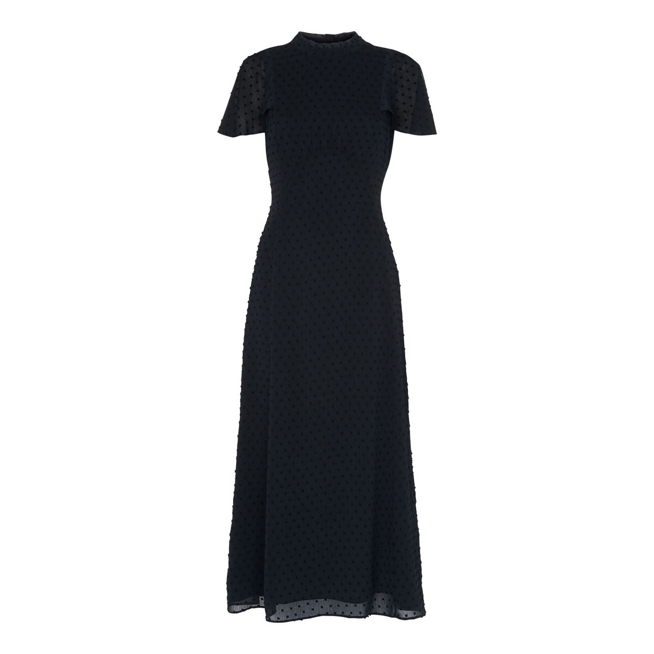 Simple yet chic, Whistles' Elouise dress is idea for those last-minute evening plans. Cut to a flattering fit and flare shape, its fluted cap sleeves and high neckline give it elegant edge. Finished with textural polka dots throughout, just add statement earrings and a pair of heels.
