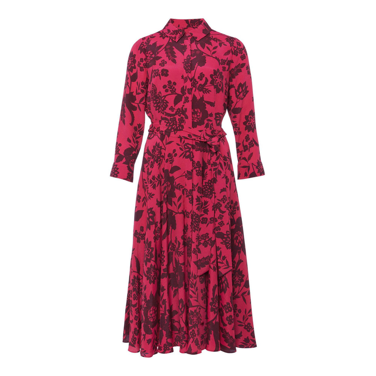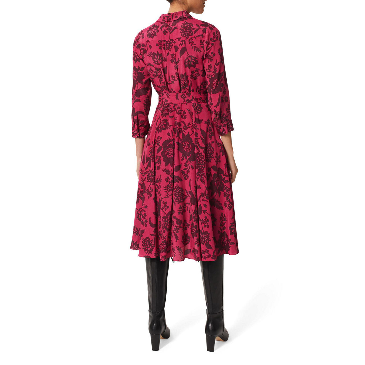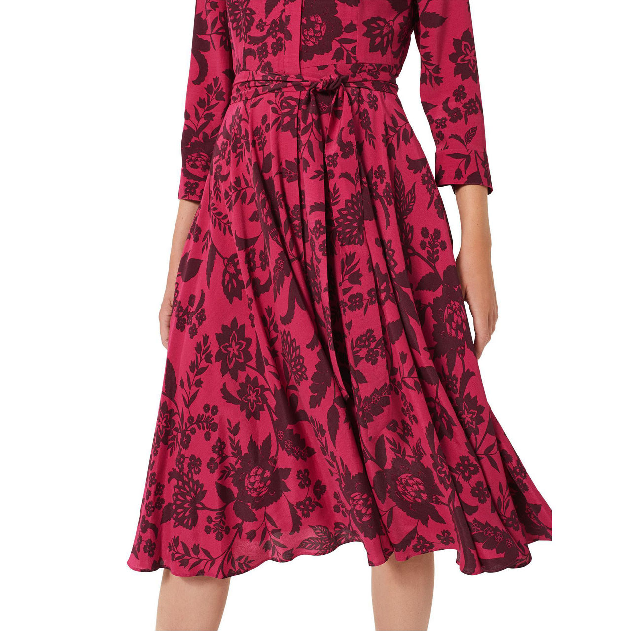 With a sweeping, midi-length style and flared design, the Lainey dress from Hobbs is a romantic, feminine wardrobe must-have. Covered in a bold, floral print, it's framed by a sharp, pointed collar with long sleeves and features a self-fabric belt to cinch in the waist, while it's finished with a concealed button placket for a polished look.