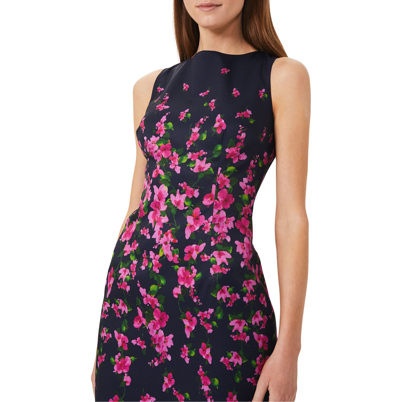 Summer occasion style, in full bloom. The Moira was designed with elegant events in mind. Showcasing a beautiful floral print, it's cut to a fitted silhouette with carefully placed darting to highlight your waist. Finish with a pared-back clutch and court shoes.