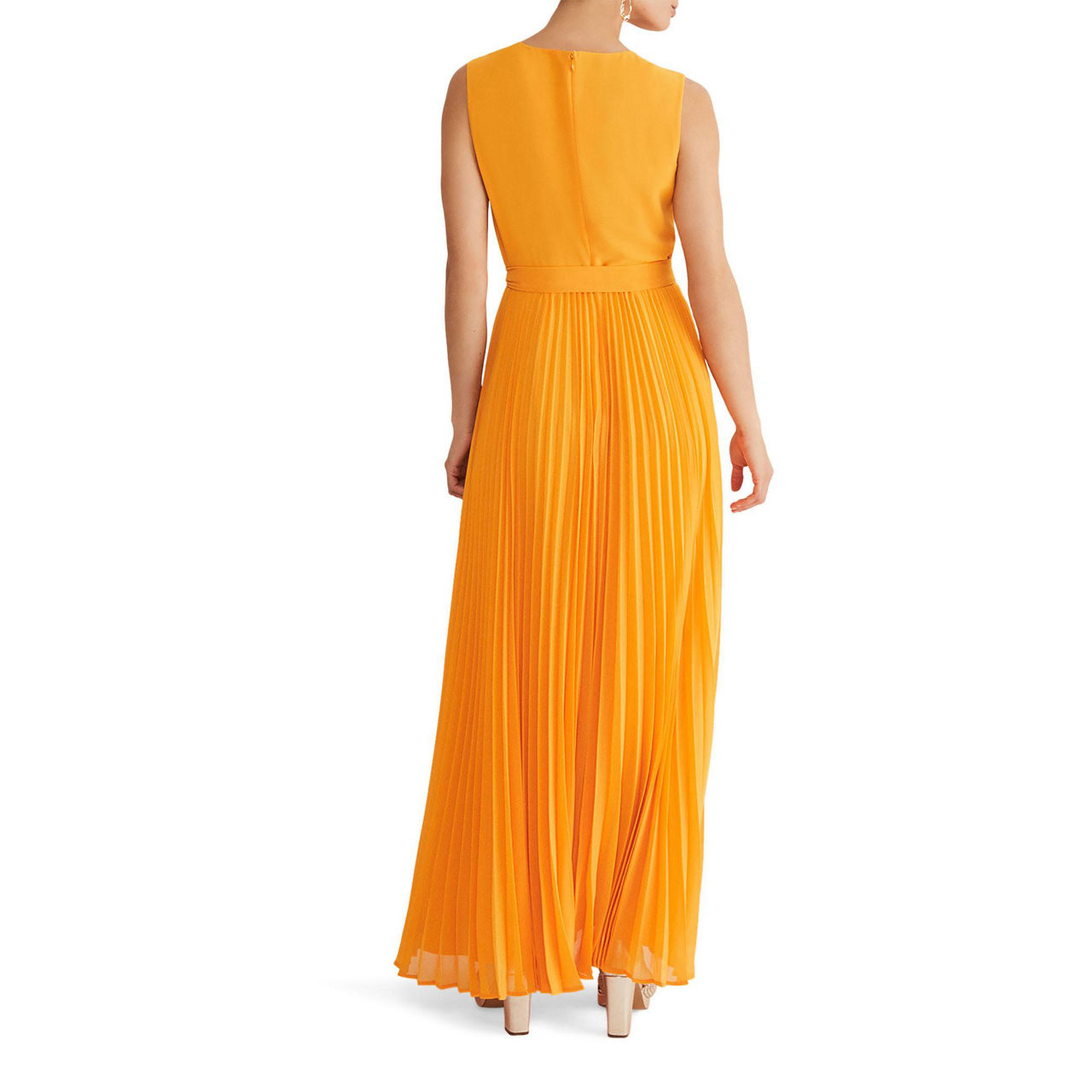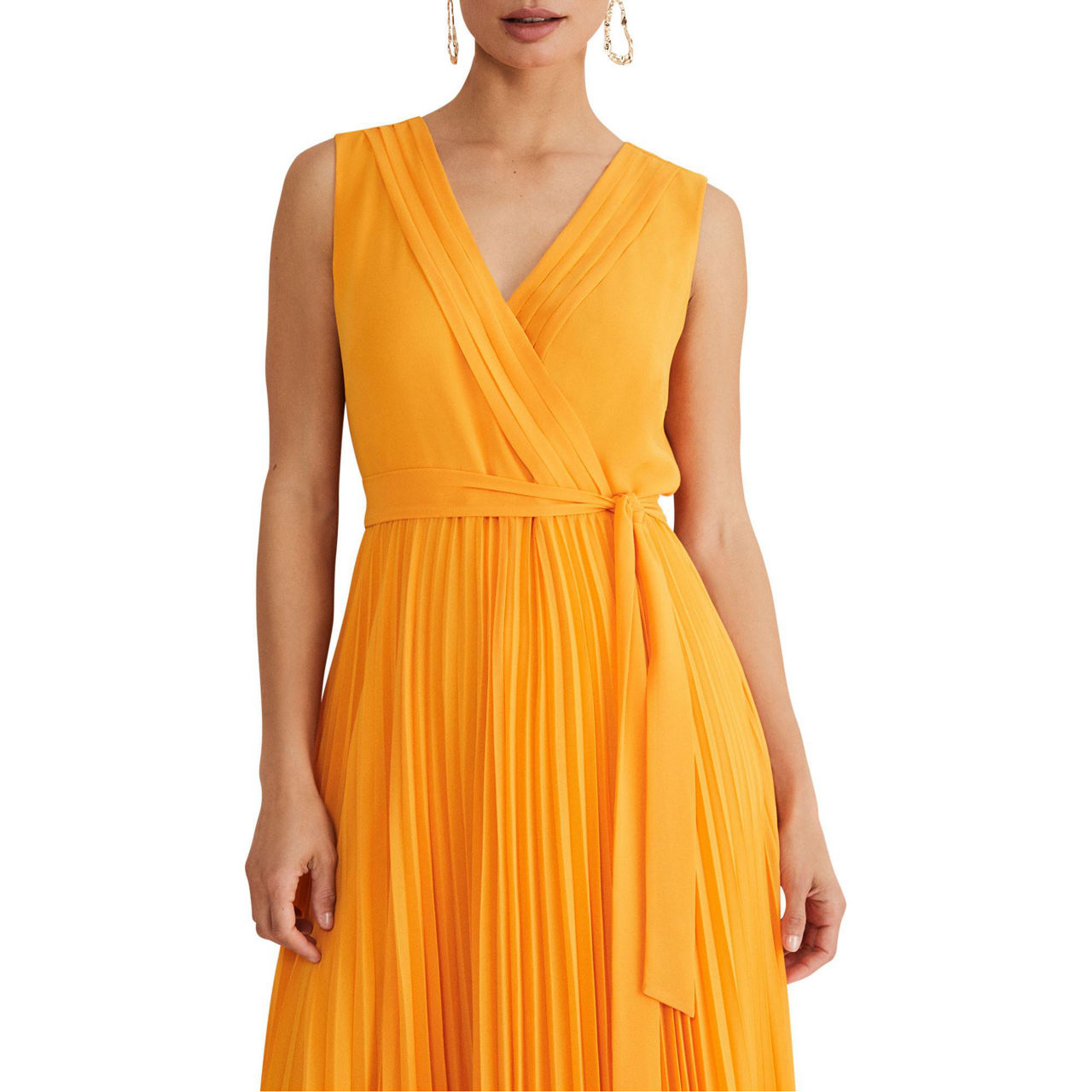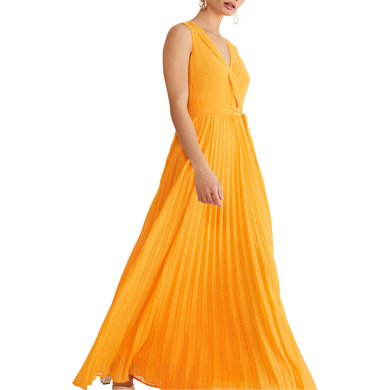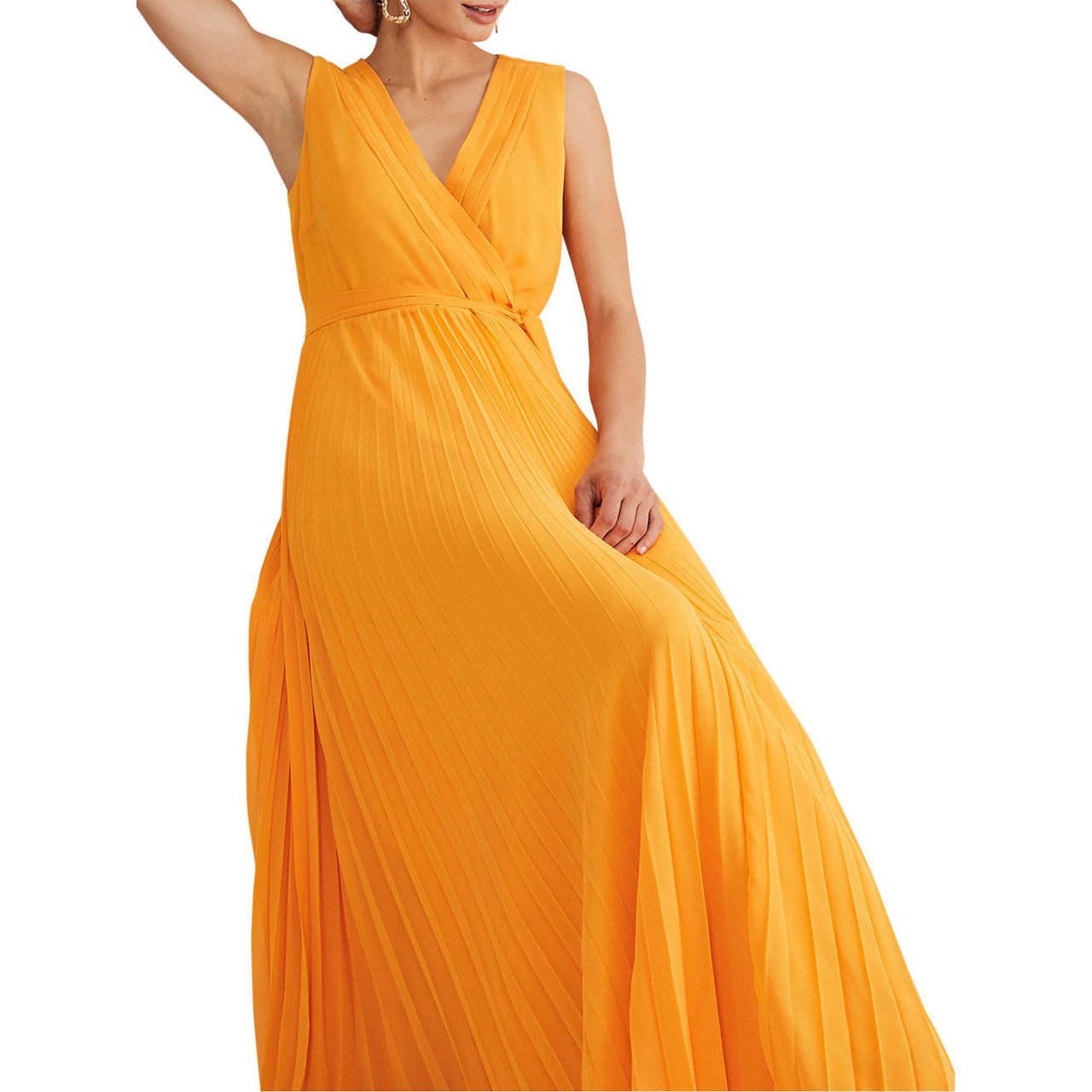 A stunning dress to make a statement at your next event. Designed in a bright, mood-boosting orange shade, Phase Eight's Mollie dress features a wrap around bodice, a tie detail at the waist and falls to a fully pleated maxi skirt that makes wonderful movement as you walk. Style with gold accessories and wear to your next special event, or just on the days where you feel like wearing an amazing dress!