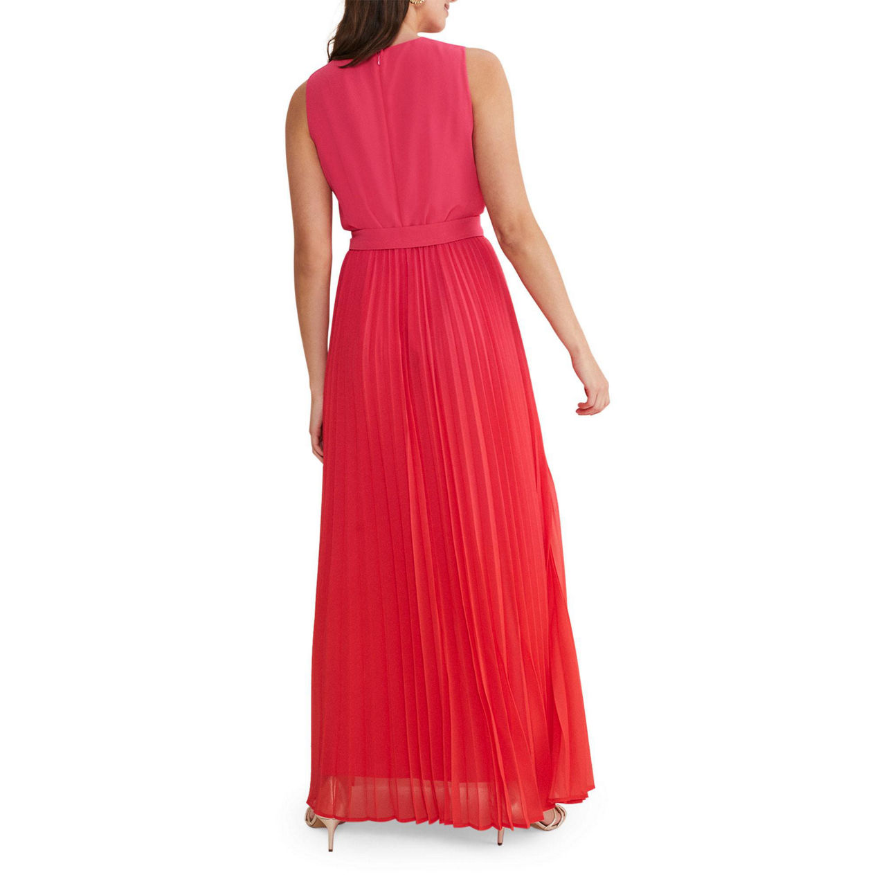 - Tie detail at the waist, pleated skirt, flared cut, ombre design, V-neckline, sleeveless, concealed zip fastening