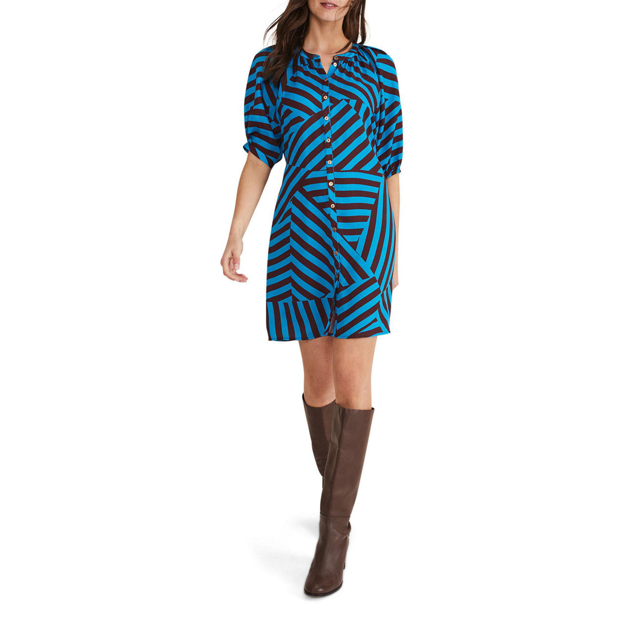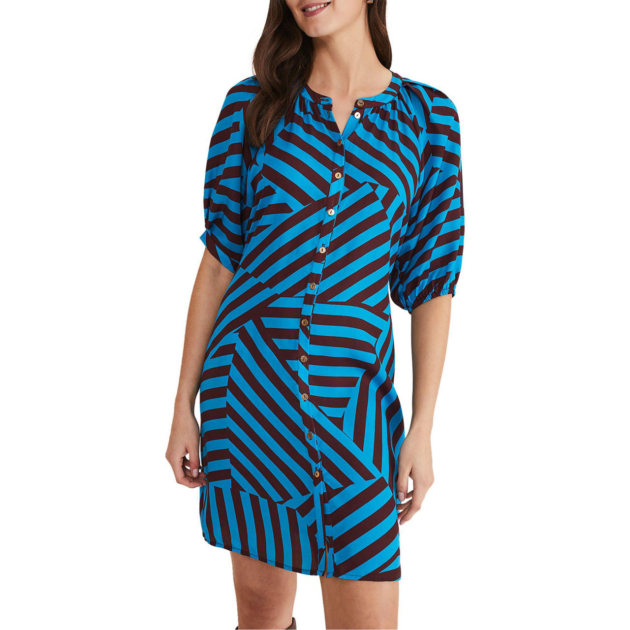 Meet your new go-to dress. Designed in vibrant blue and brown stripes, Phase Eight's Rosella dress features a notched neckline, button down detailing and a back belt to accentuate your waist. Dress up with knee high boots or down with trainers.