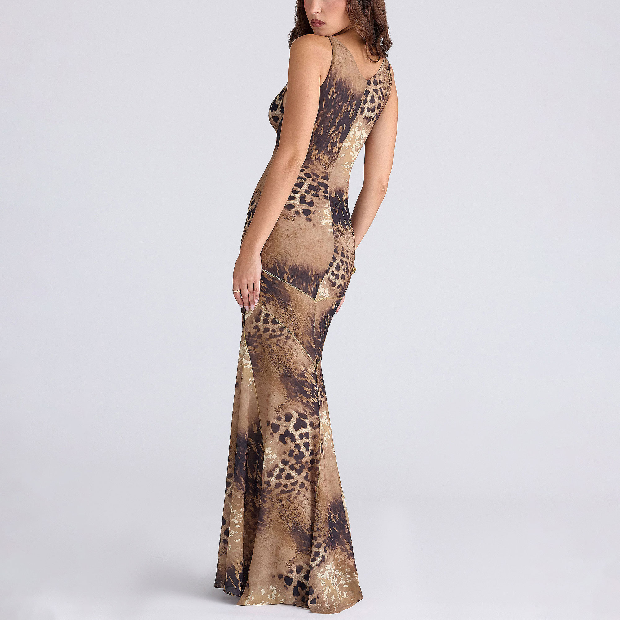 HOUSE OF CB Sacha Leopard Panelled Bias Cut Dress