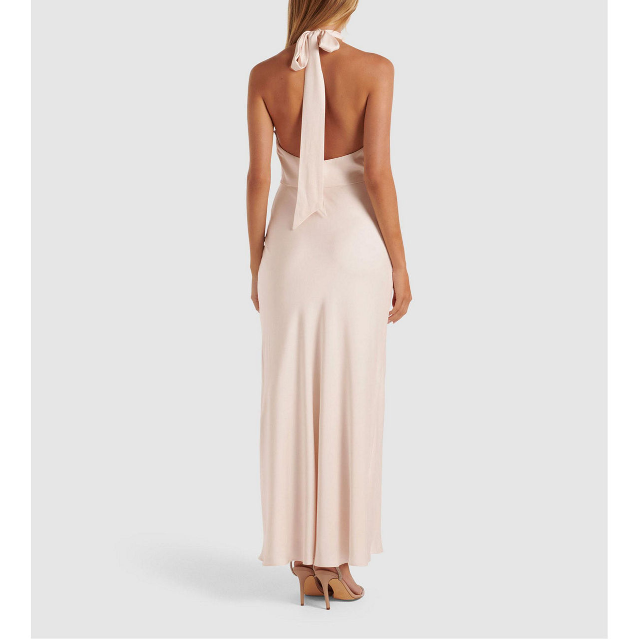 - Sleeveless, halter neck style, concealed zip fastening, maxi length
