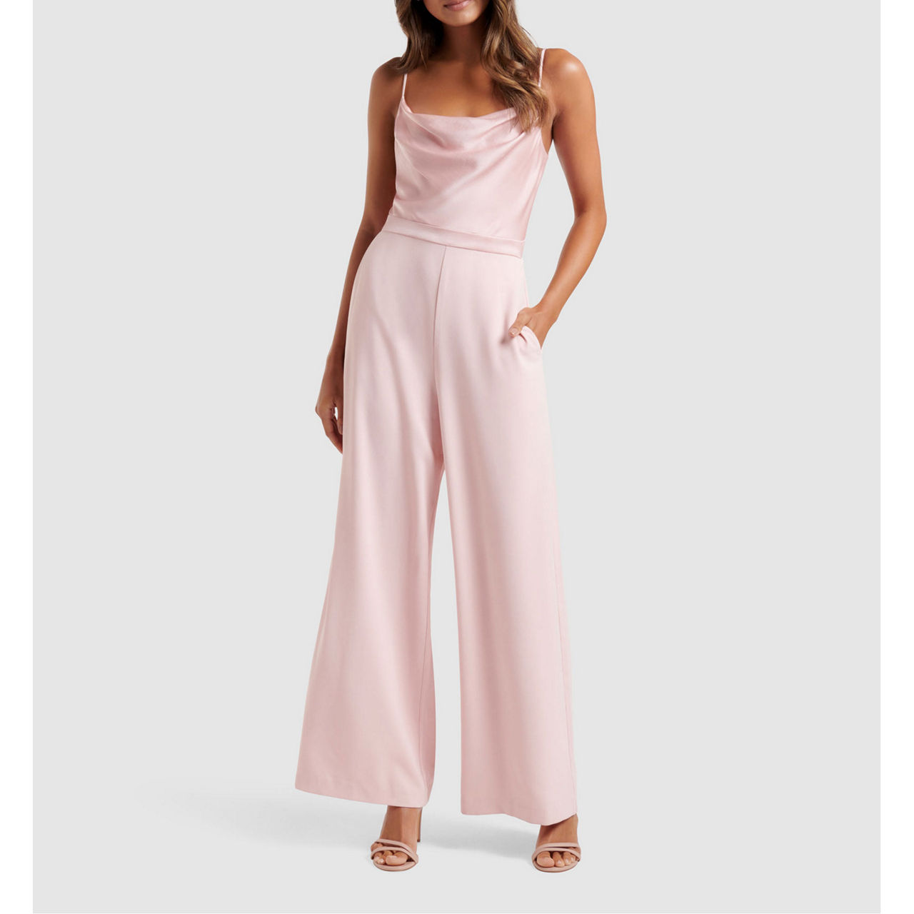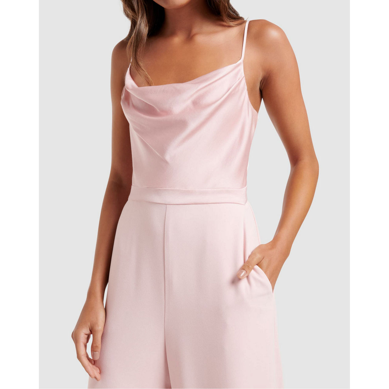 Feminine design meets trending style. The Ebony Satin Cowl Neck Jumpsuit from Forever New will be your go-to for a simple and chic event look. Style the wide-leg silhouette with platform heels to balance out the fluid fabric.