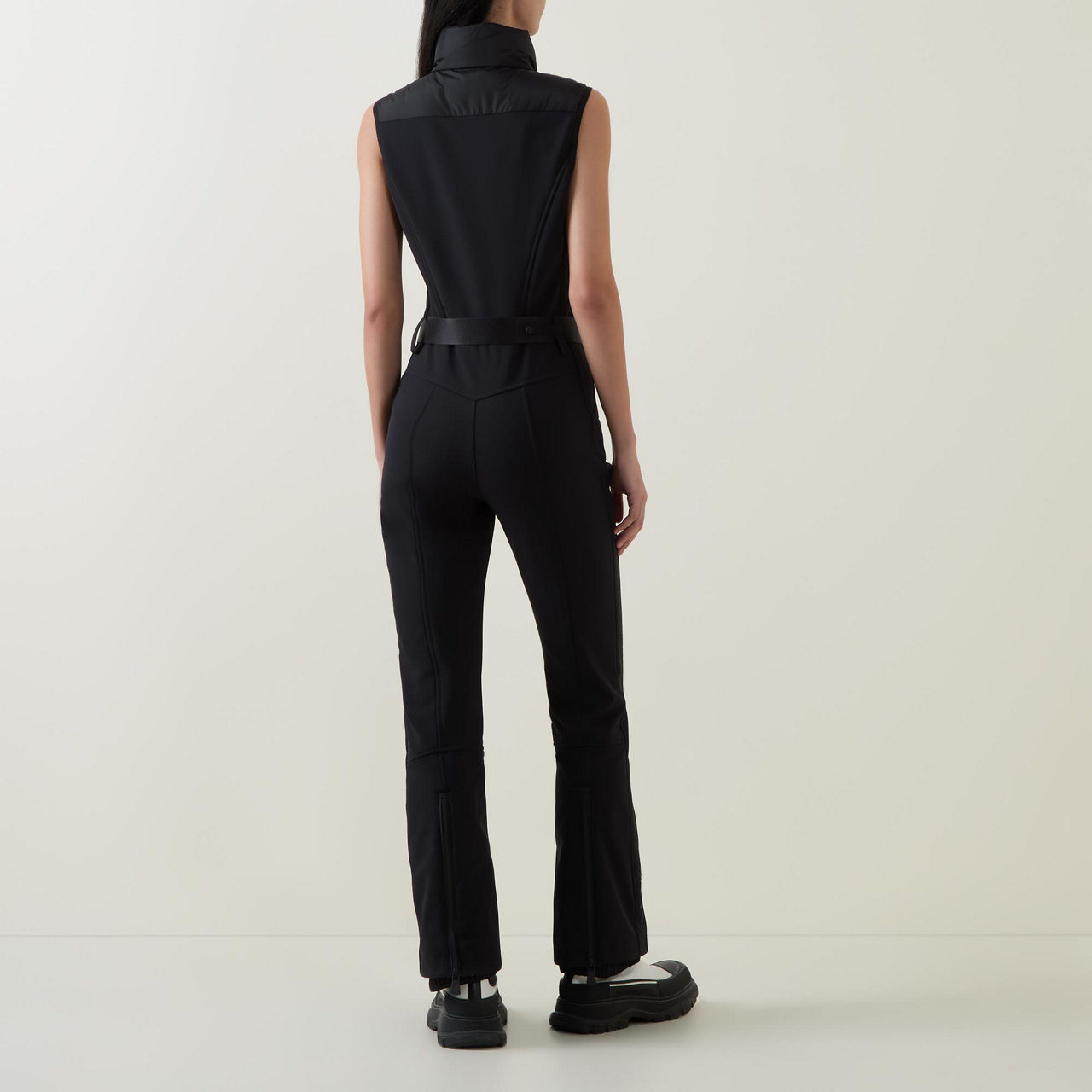 - Sleeveless, down-filled bodice, water-resistant zip fastening, adjustable and detachable belt with glove carabiner, water-resistant zipped cuffs, ski cut hem protection, bonded logo