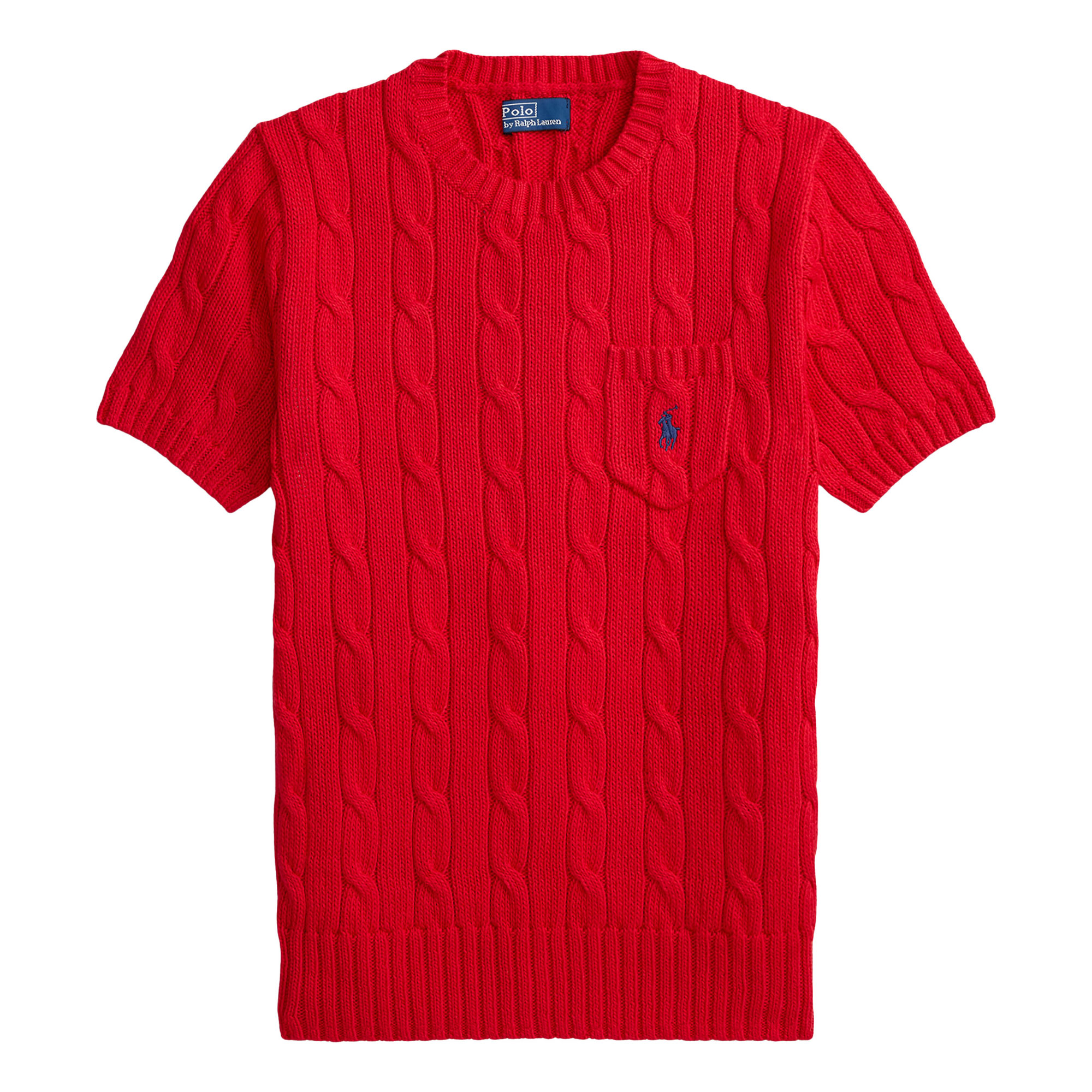 - Crewneck, short sleeves with rib-knit cuffs, rib-knit hem, left chest patch pocket, signature embroidered Pony at the pocket