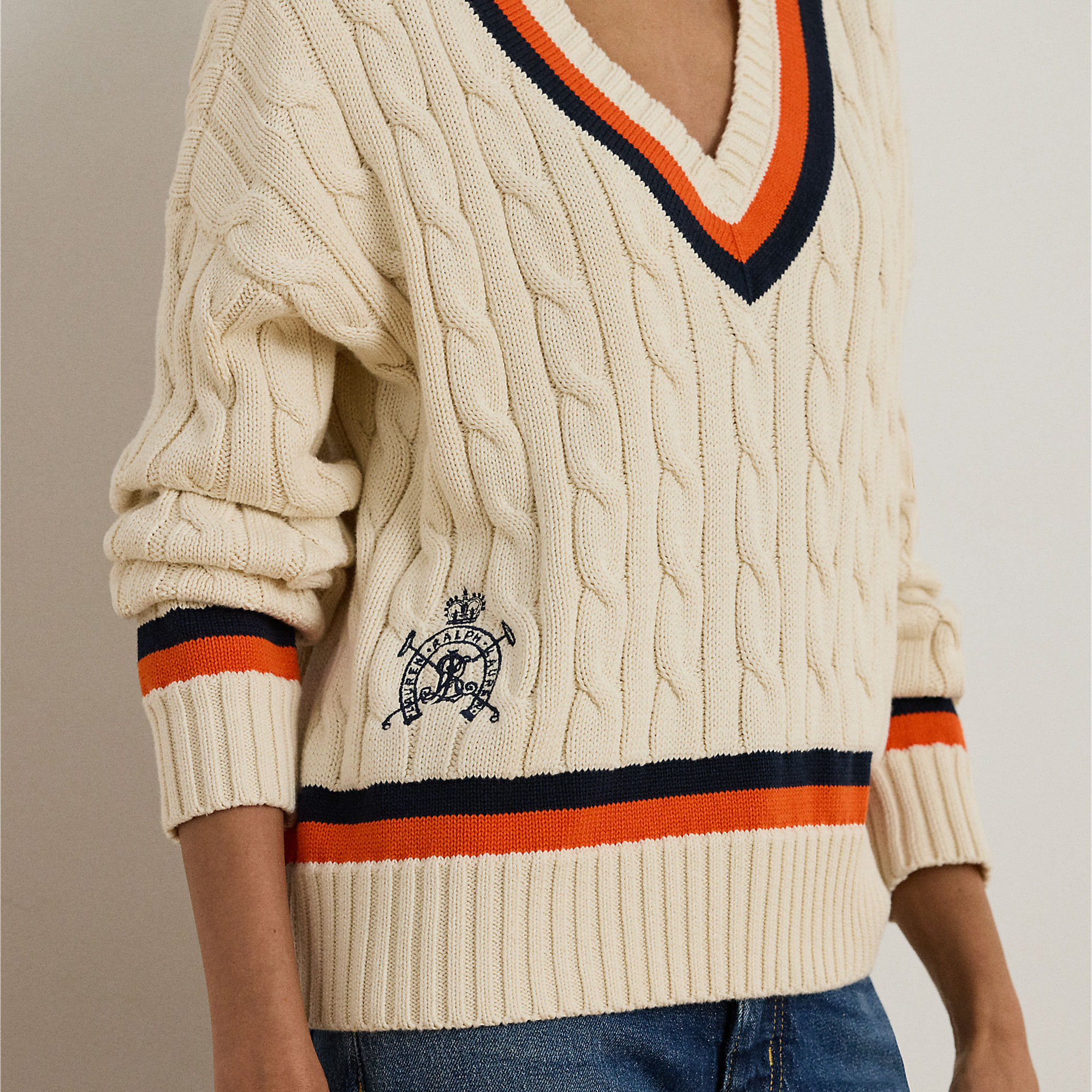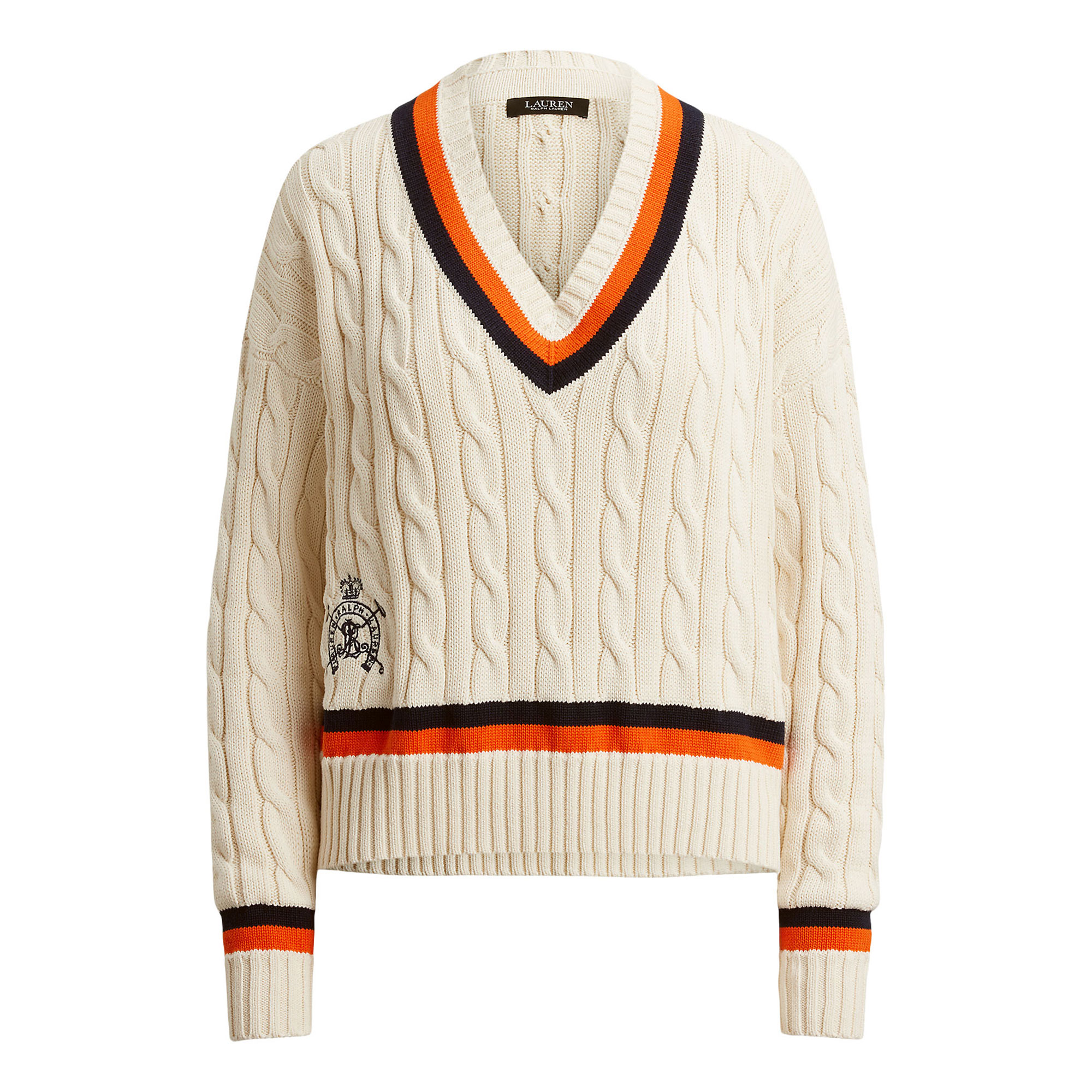 LAUREN Crest Logo Cable Knitted Cricket Sweater