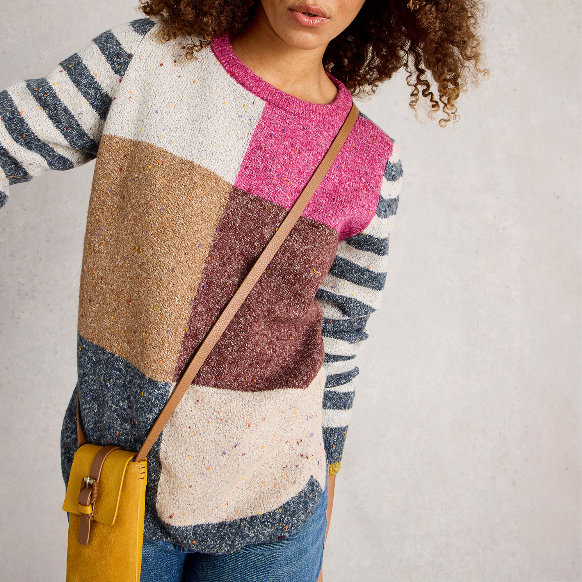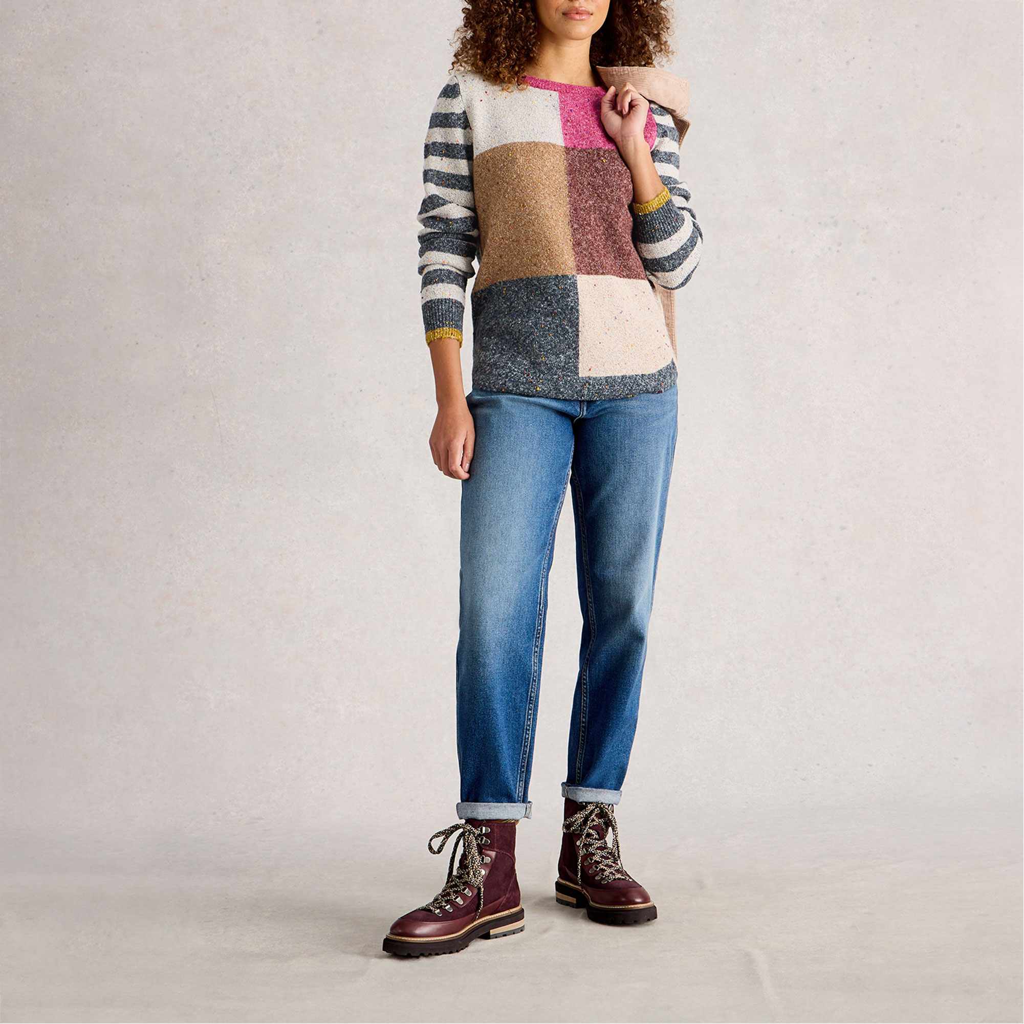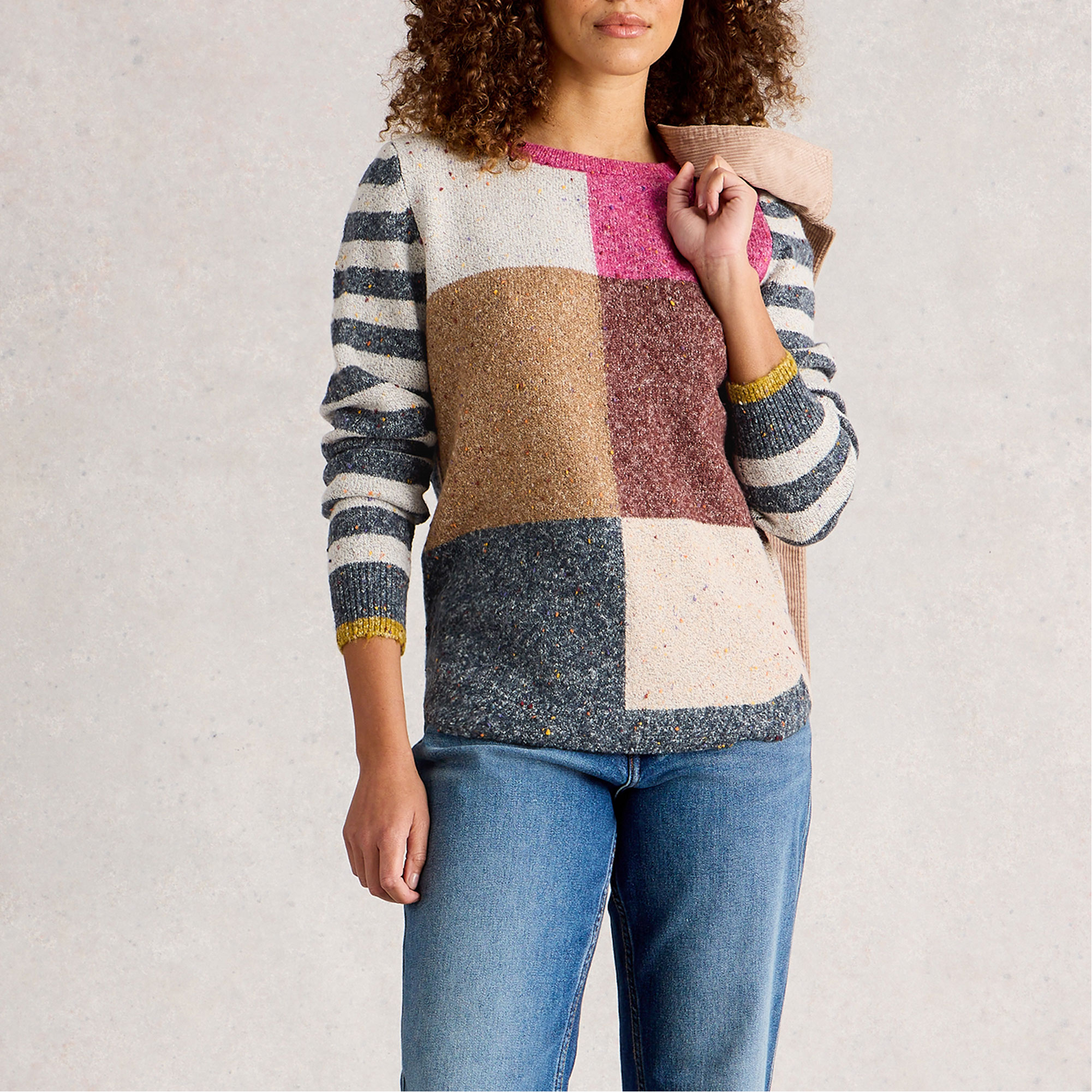 WHITE STUFF Online Exclusive Talia Striped Check Knitted Sweater