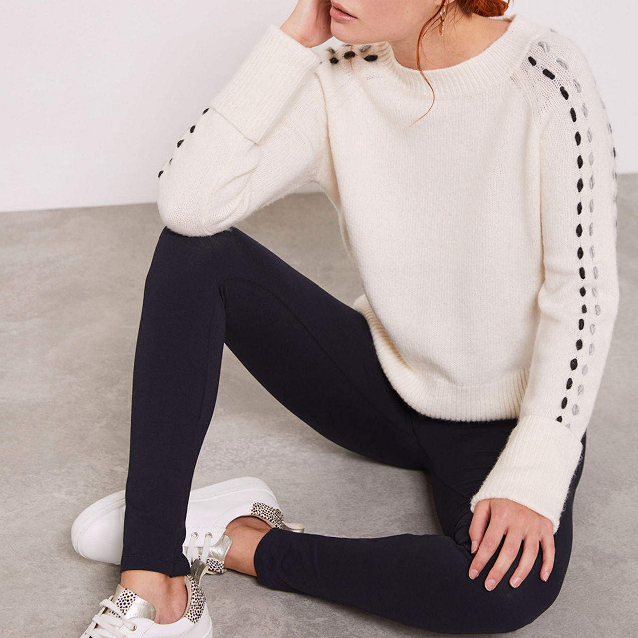 Cut from a stretchy cotton-blend fabric that's equal parts sculpting and soft, this pair of navy straight leggings will work well with most of your wardrobe. They have our signature wide waistband for an extra-flattering fit - wear yours with an oversized jumper at the weekend.