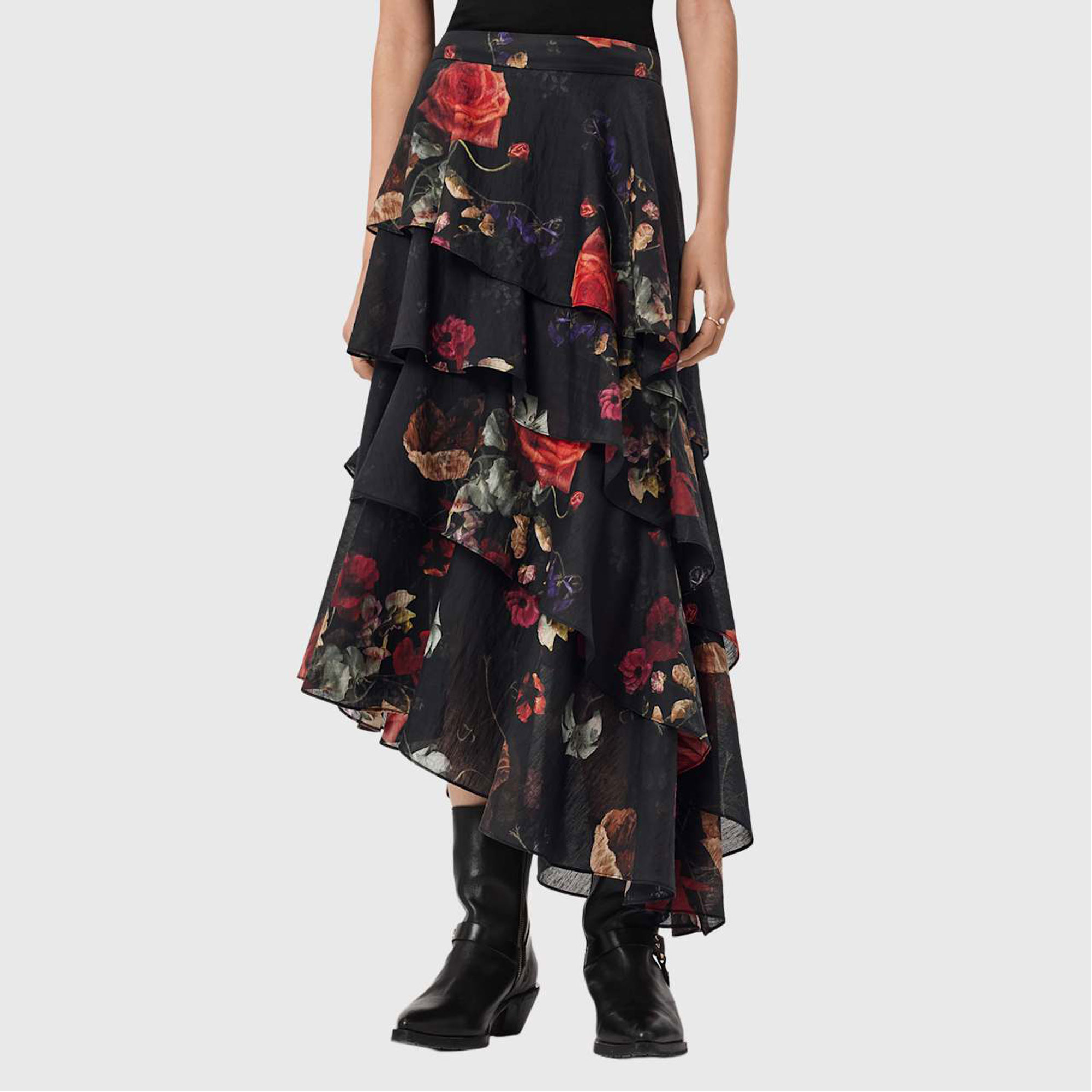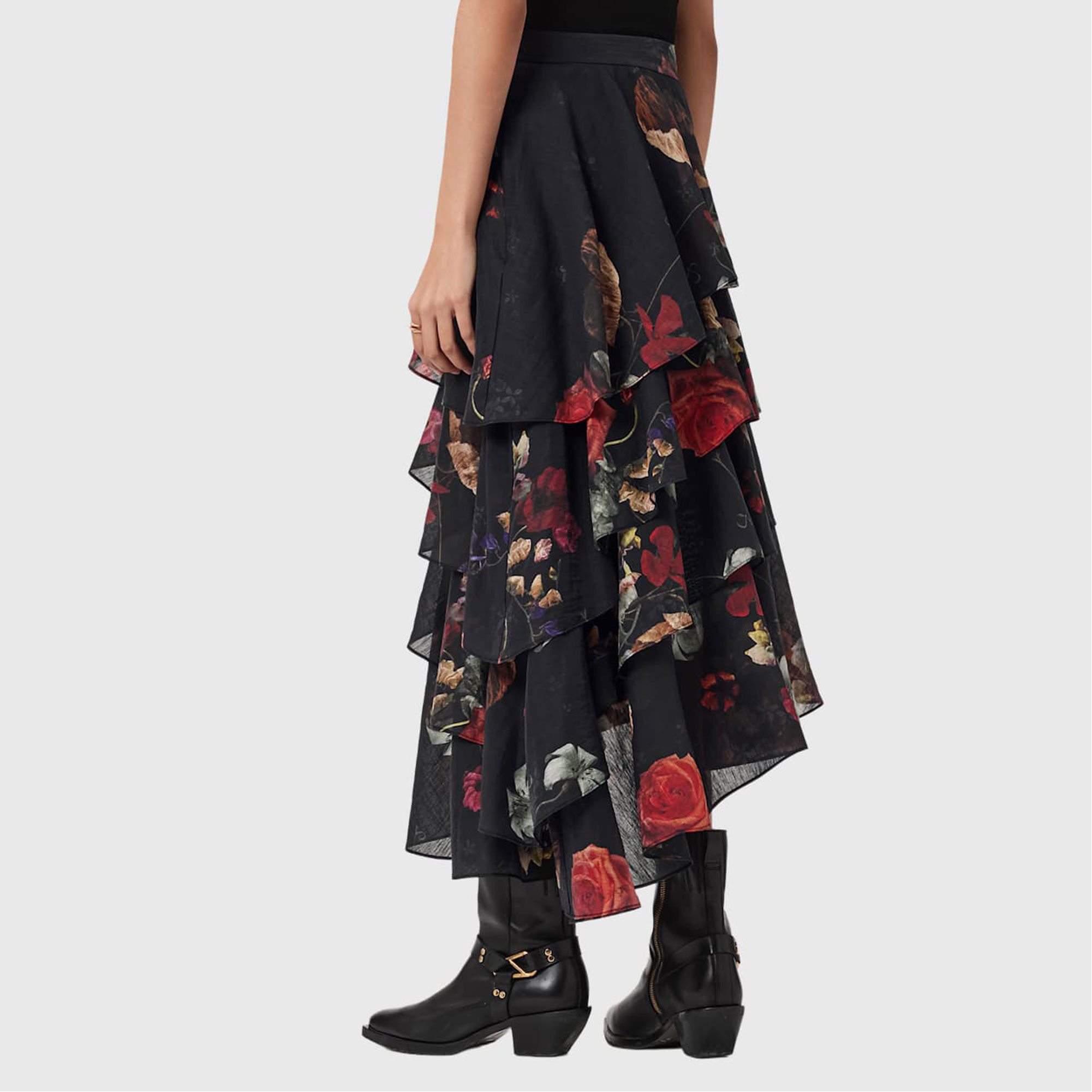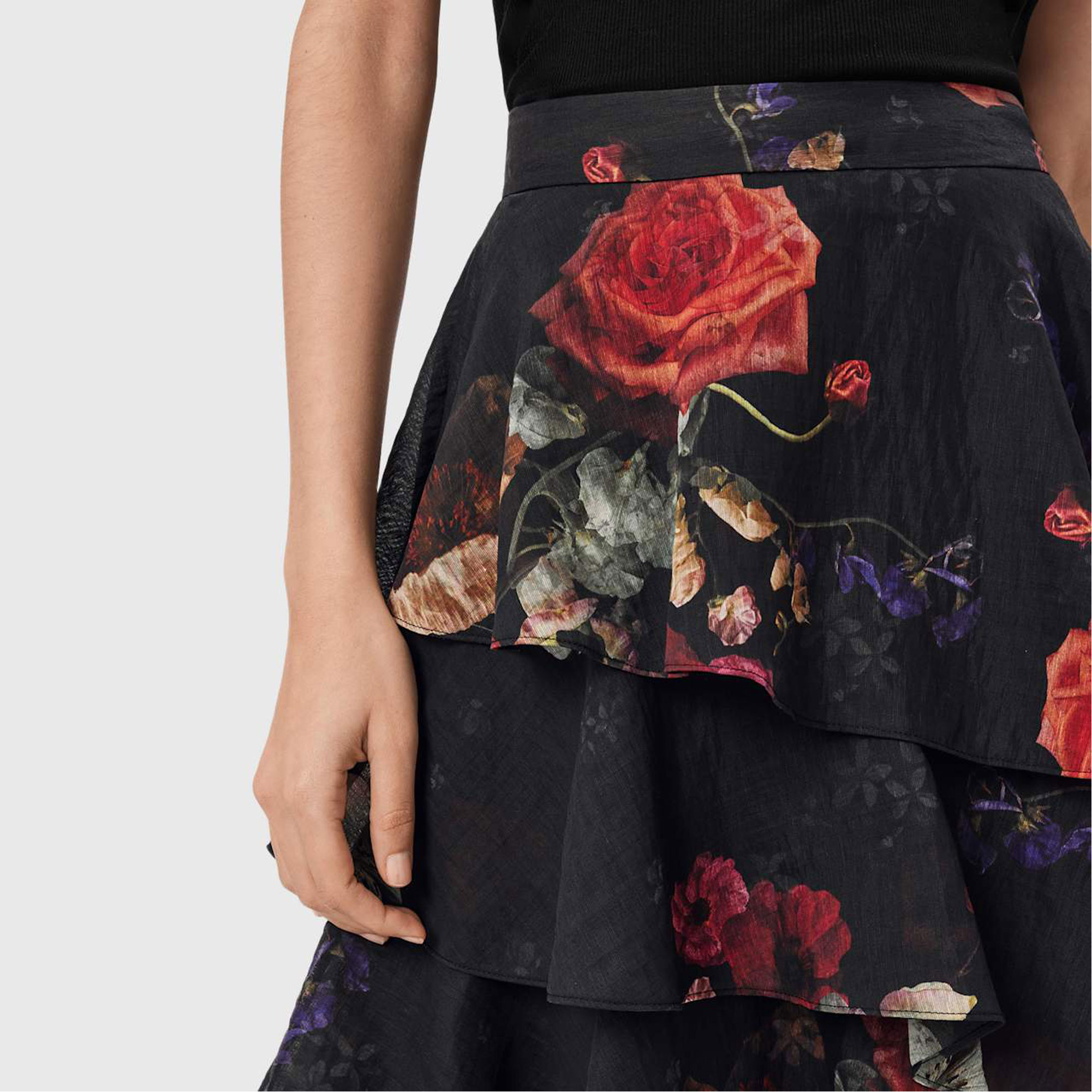 ALLSAINTS Caya Floral Tiered Ruffle Skirt