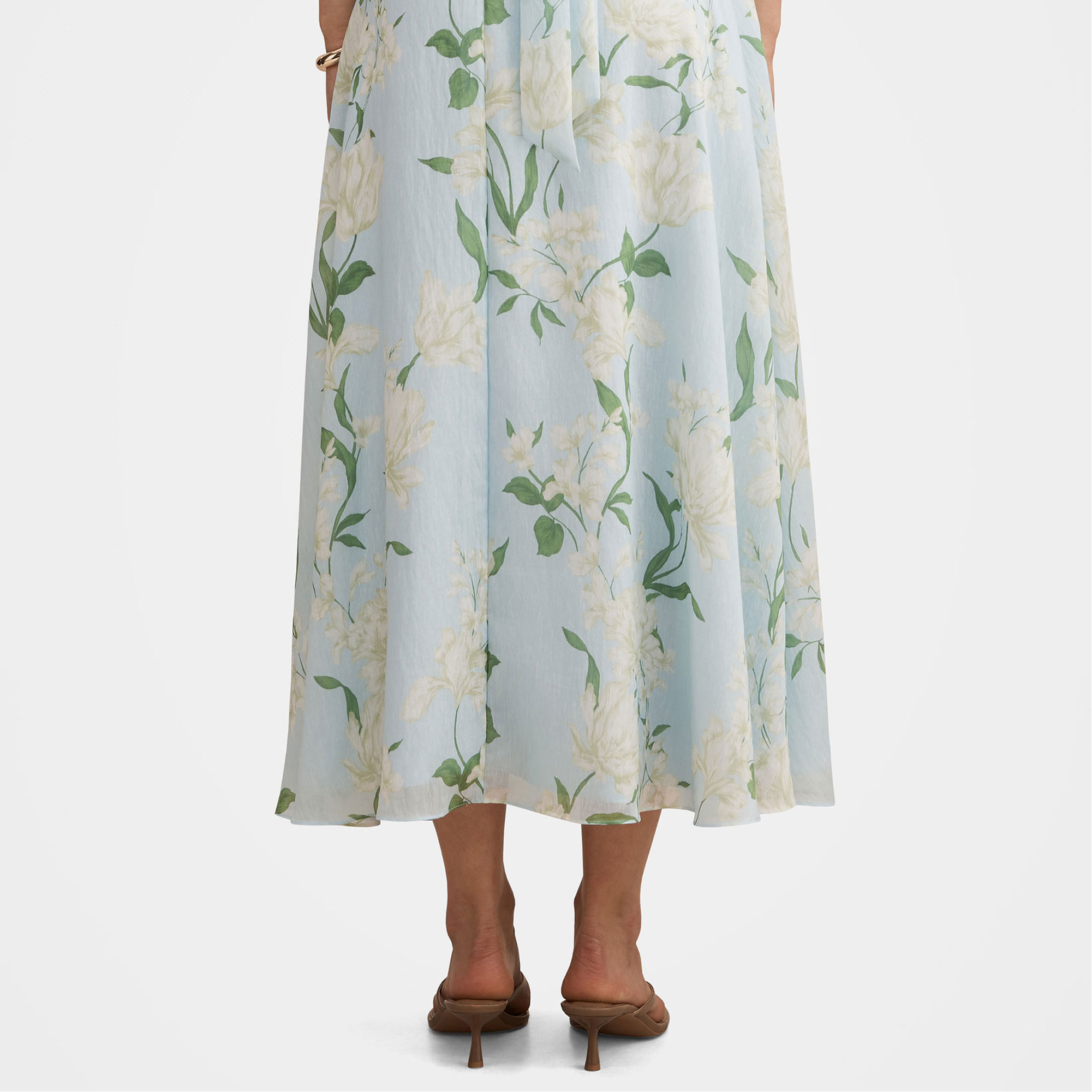 • High-rise waist, secure waistband, floral print, concealed zip fastening at side, lined