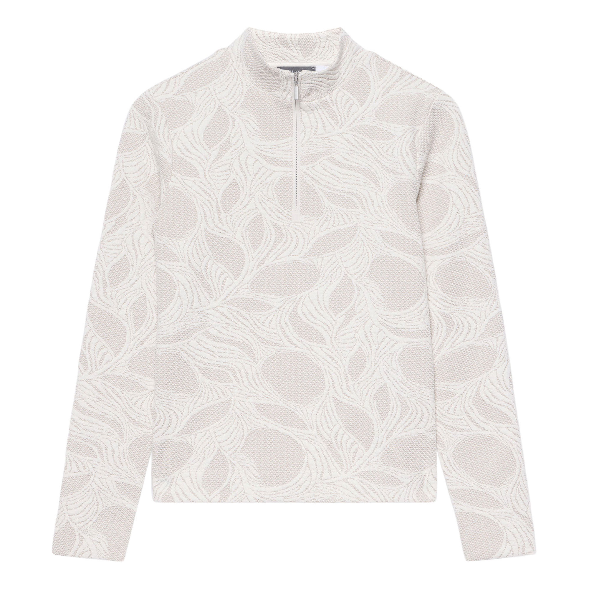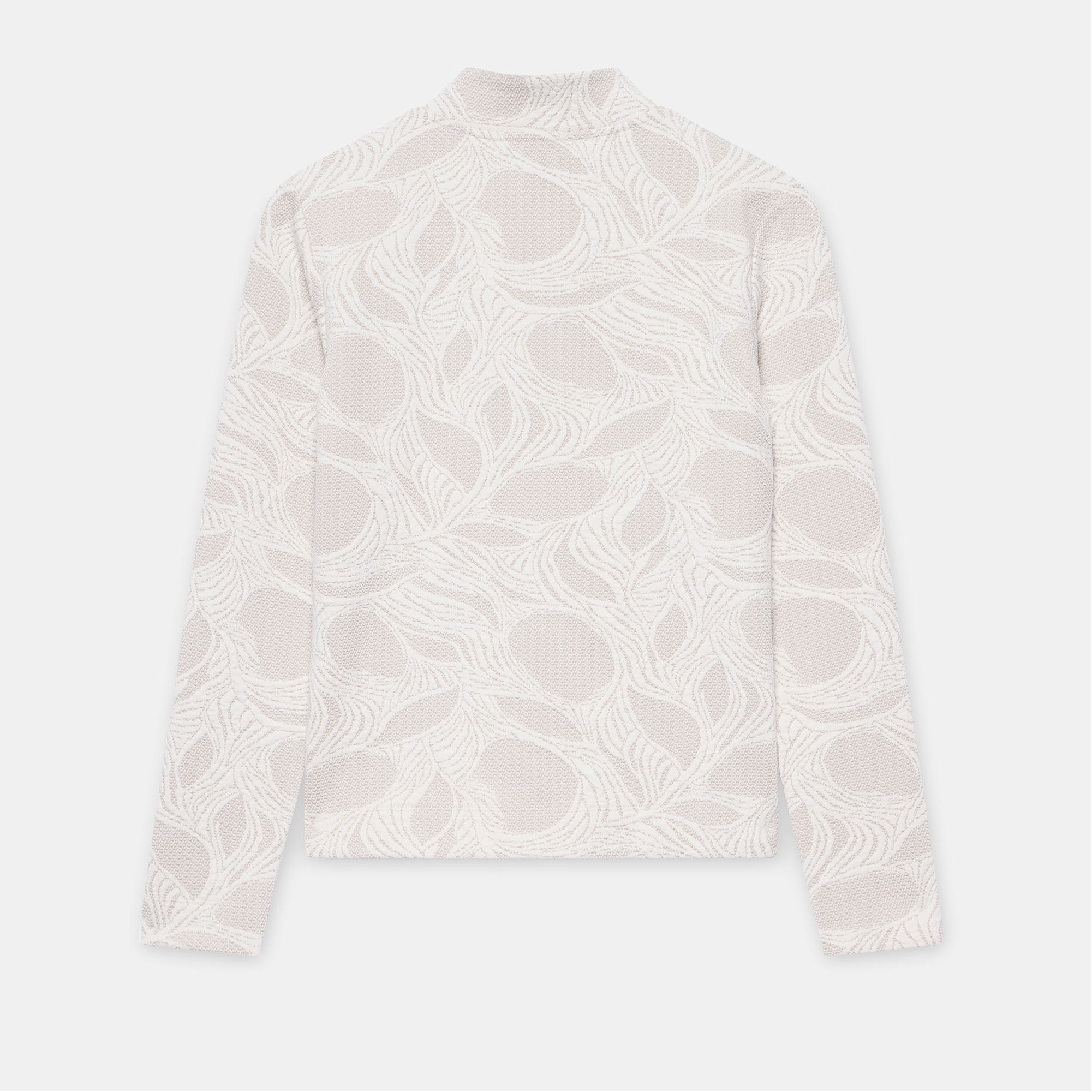 - Jacquard pattern, high neckline, long sleeves, contrast side stripe, half-zip fastening