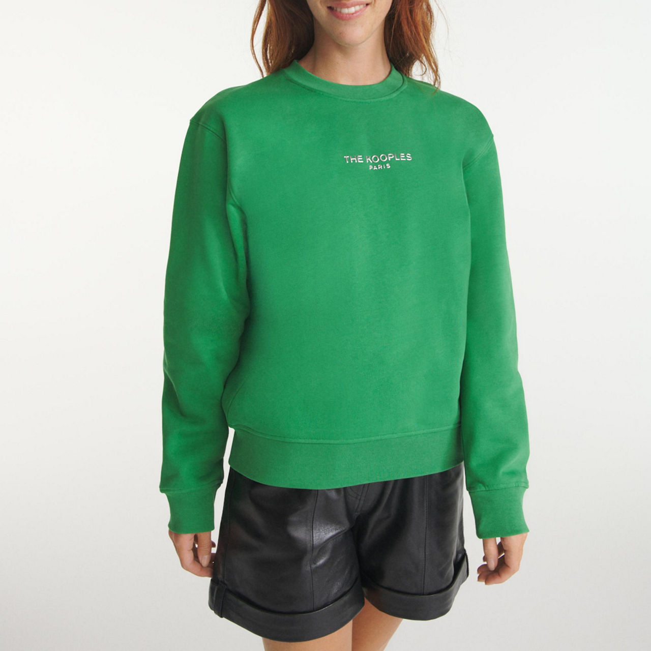 In the colour of the season, Kelly green, The Kooples presents a lush cotton sweatshirt embossed with the brand logo. Simple and sleek in design, this sweatshirt is ideal for layering.
