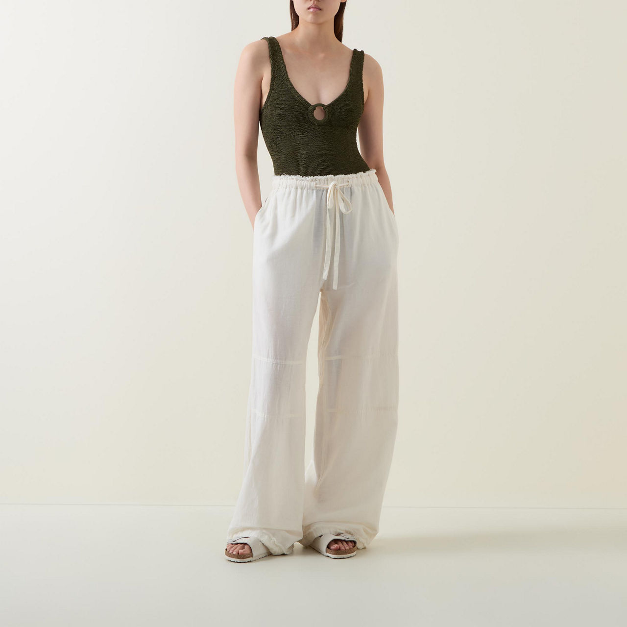HUNZA G METALLIC KHAKI Celine Tonal-Ring One-Piece Swimsuit
