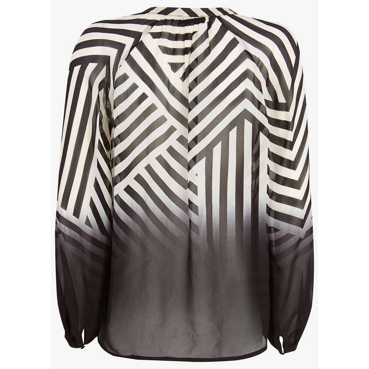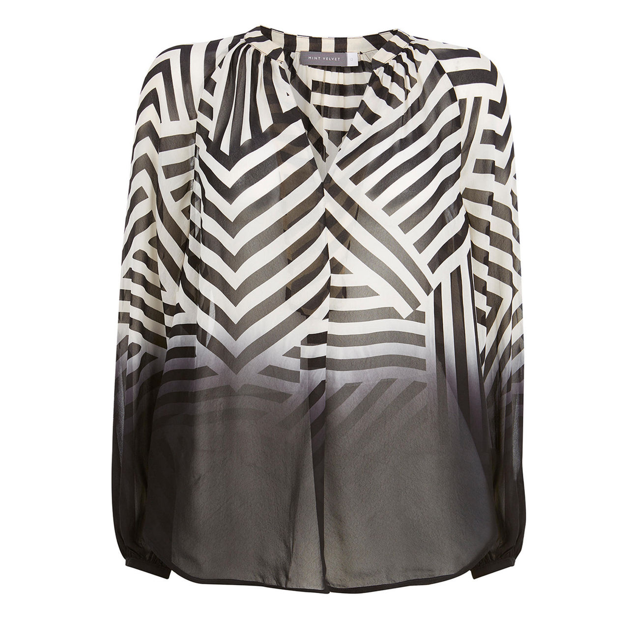Printed all over with bold geometric stripes, this Mint Velvet blouse is designed in a relaxed silhouette with a ruched, open V neckline. It's artfully dip-dyed and features puffed sleeves for a romantic feel - toughen yours up with cargo trousers or joggers for an elevated relaxed look.