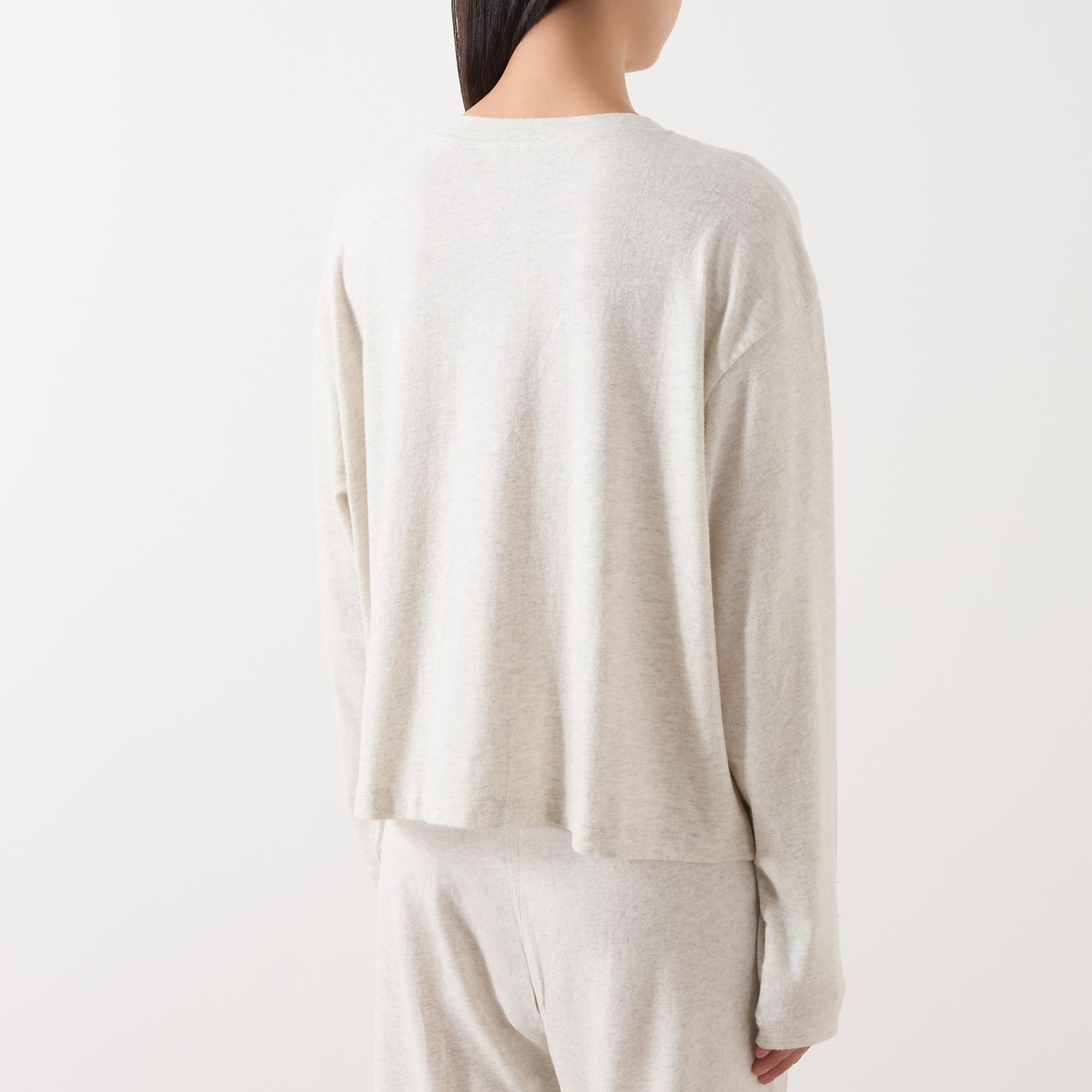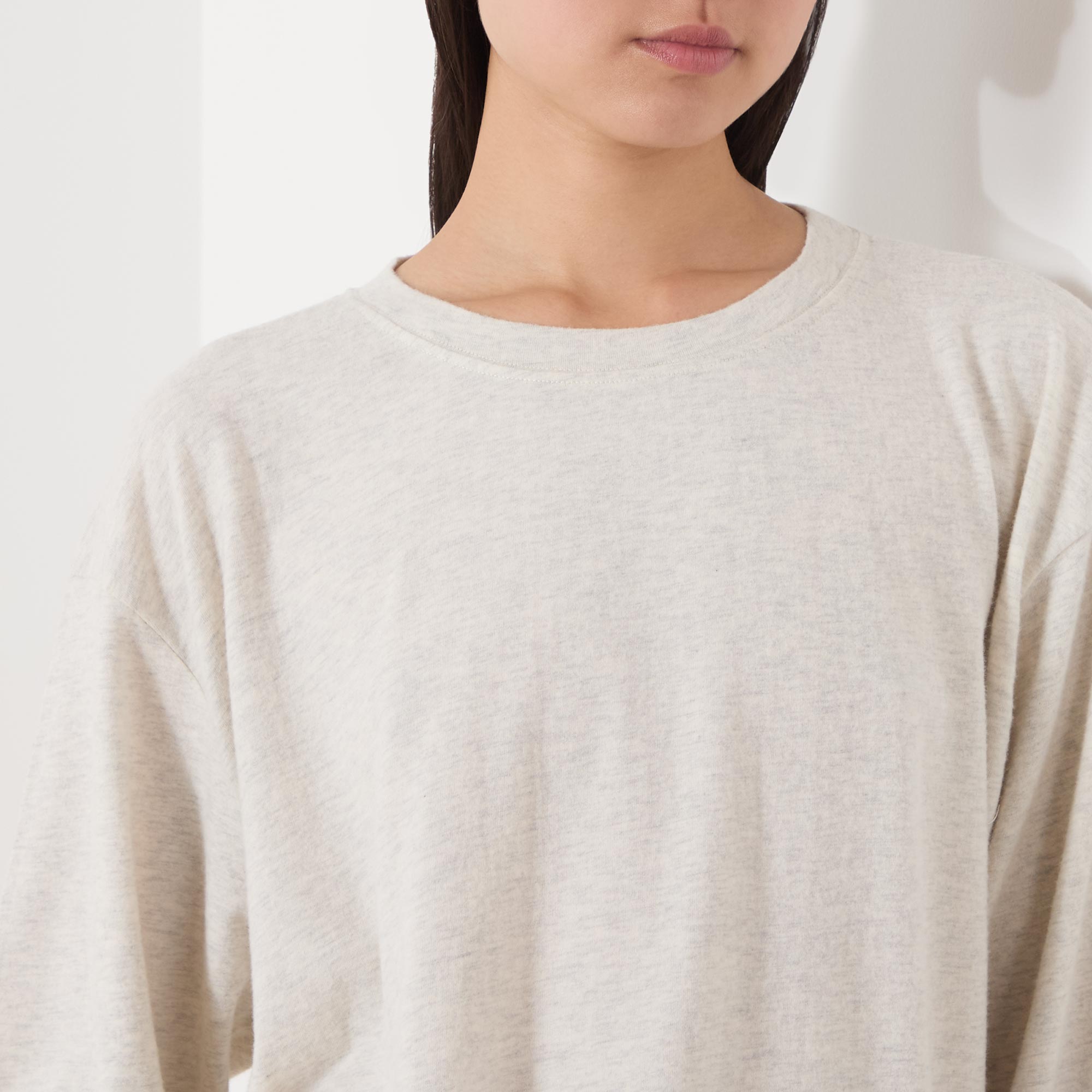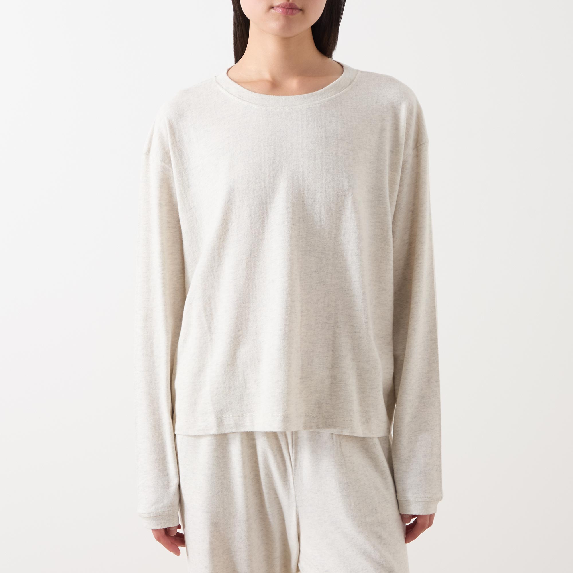 - Long sleeves, round neck, straight hem