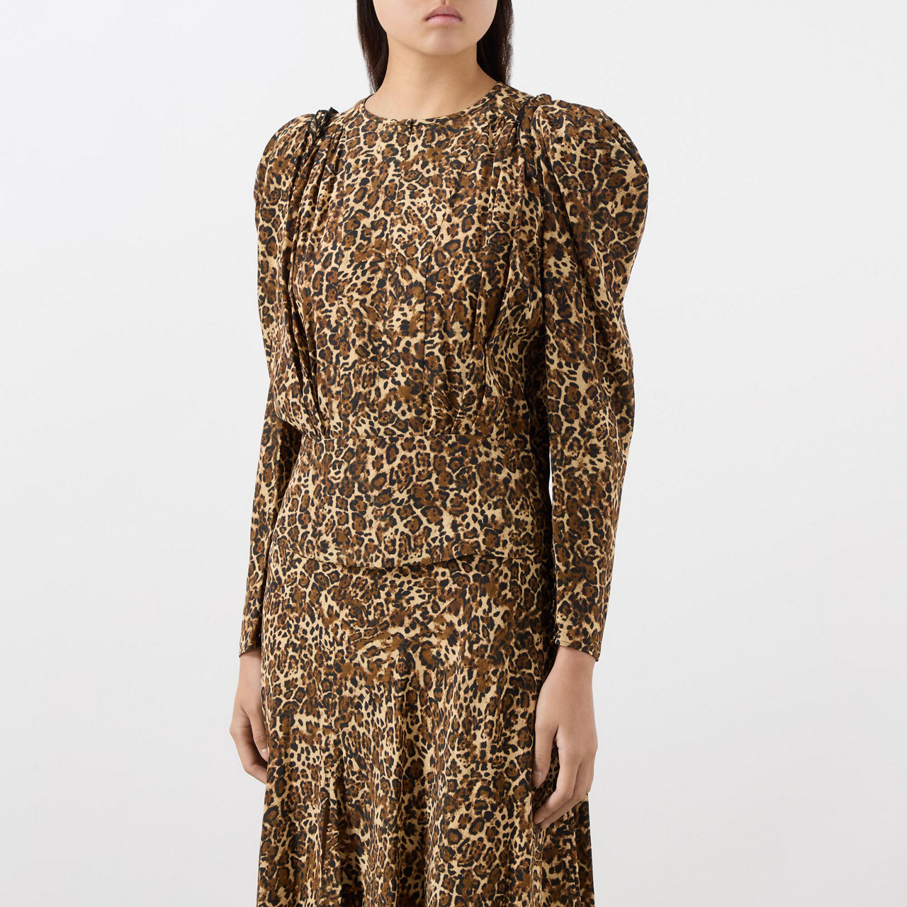 ISABEL MARANT Zarga Pleated Leopard Print Blouse
