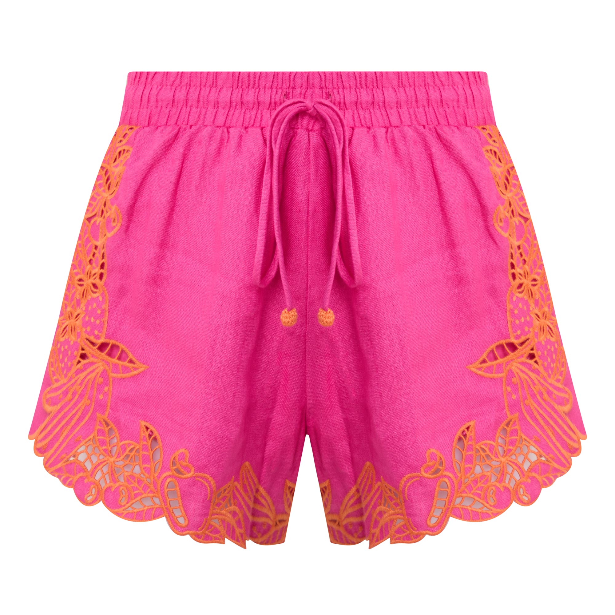 - Linen fabric, hand-stitched embroidery, elasticated drawstring waistband